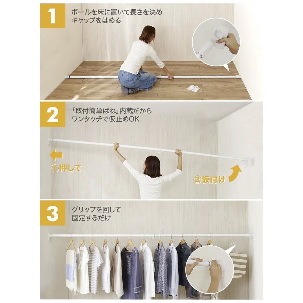 突っ張り棒 取付幅 72〜110cm S 簡単設置 極太ポール