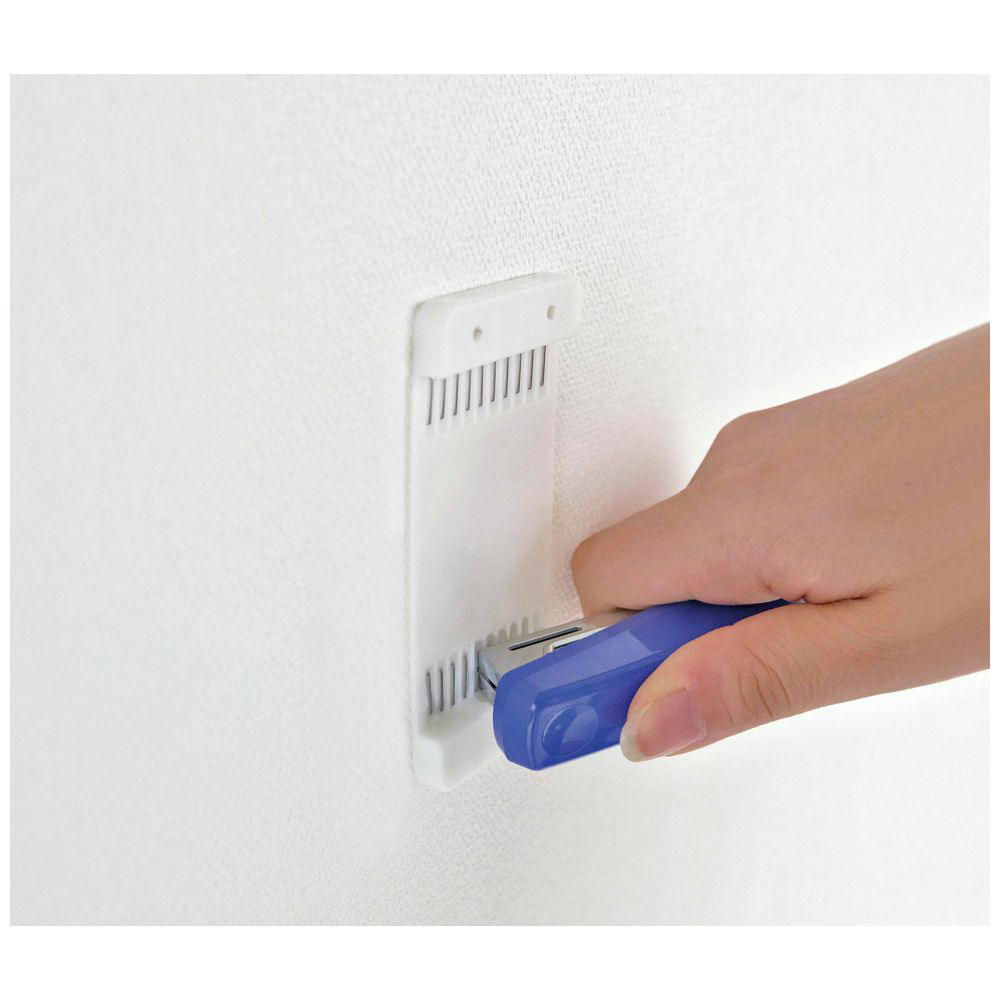 ※石膏ボードへの取り付けには、本体が180℃以上開くタイプのホッチキスが必要です