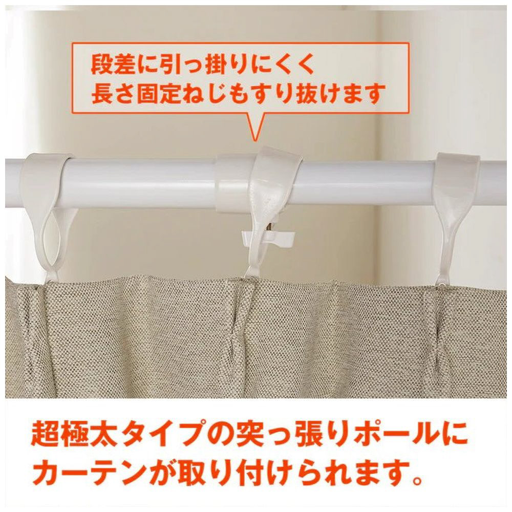 ■パイプ径の大きな突っ張り棒の固定ネジやジャッキ、接続部の出っぱりにも引っかかりません。