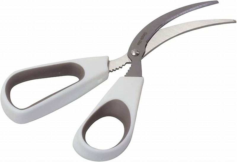 「Simple Use」Simple life with Simple Use.ニーズは変わる。シンプルなデザインで応える。清潔感のあるホワイトを基調としたシンプルなデザインで、統一感のあるキッチンに。パール金属から新しい「Simple Use」シリーズが誕生しました。長いギザカーブ刃で、食材を逃がしにくいカーブはさみ。皮やスジのある肉、イカやタコなどのカットにも。カーブしているので、お皿の上でも切りやすく食材の下ごしらえに最適です。