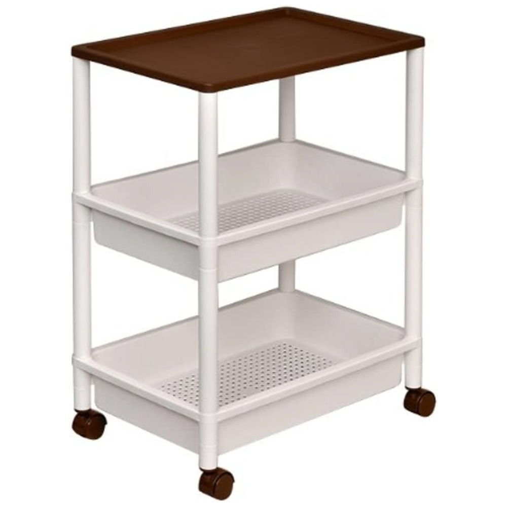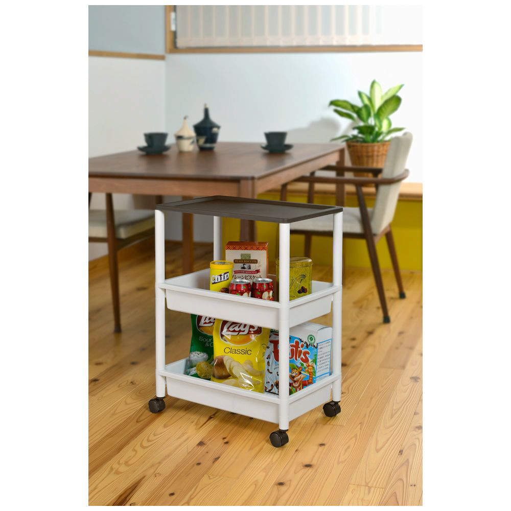 ■散らかる小物やストック類などをすっきりと整頓できる、樹脂製の3段ワゴンです。
