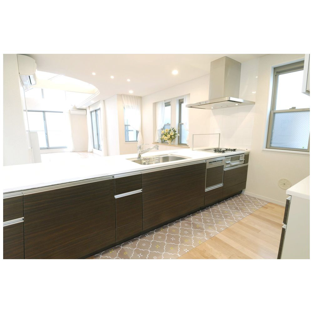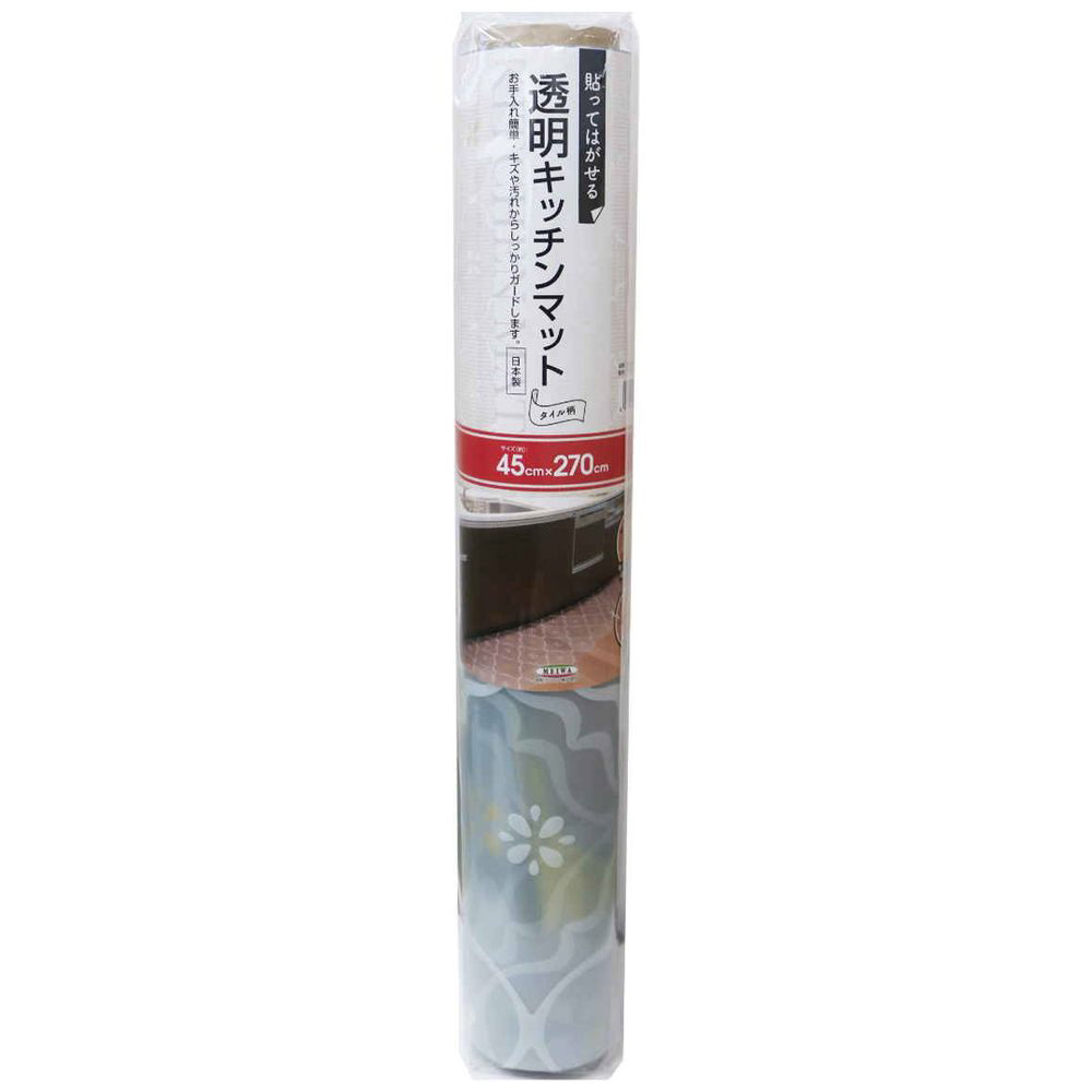 キッチンマット 拭ける 45×270cm 柄物 クリア タイル