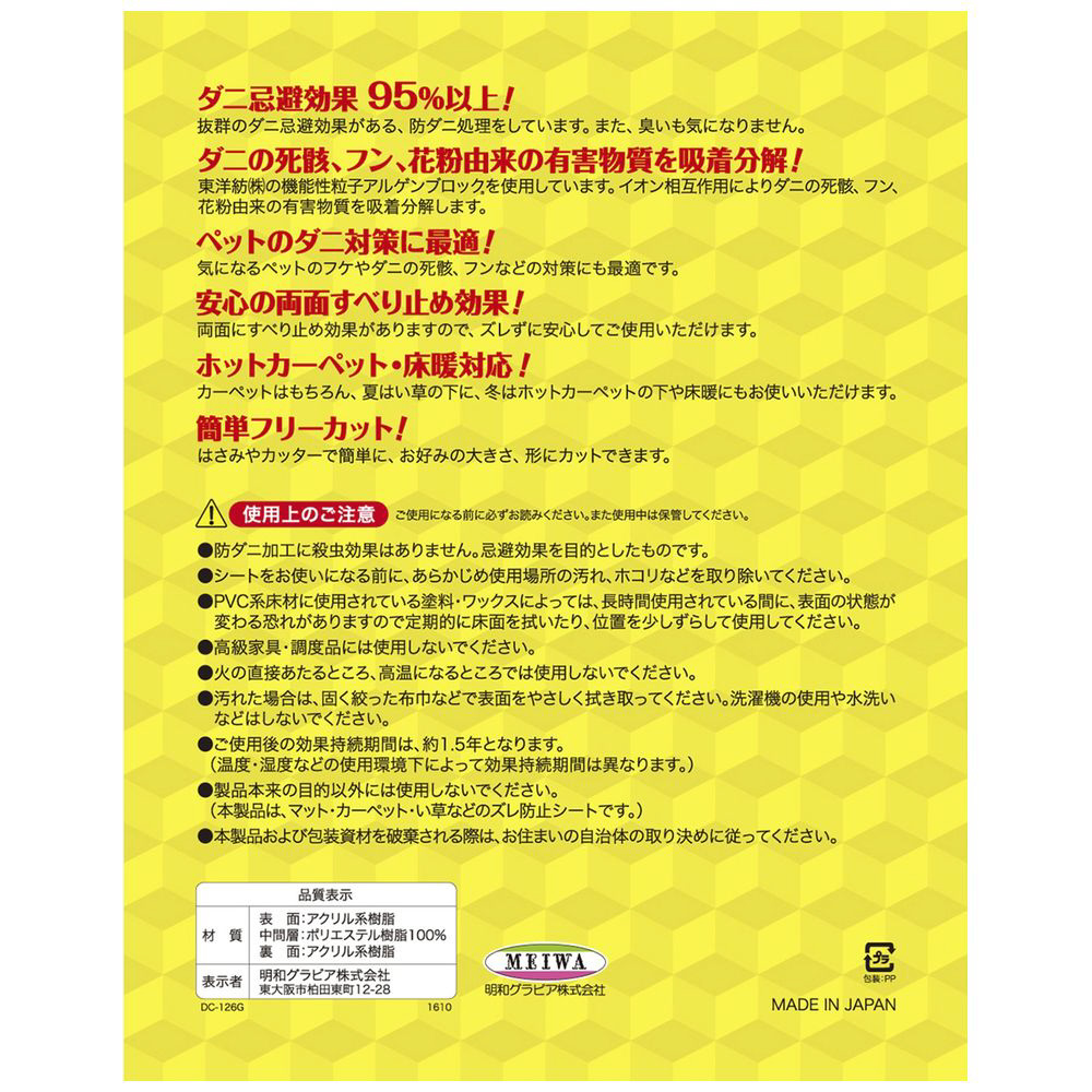 ダニ忌避効果約95%以上の防ダニシートです。