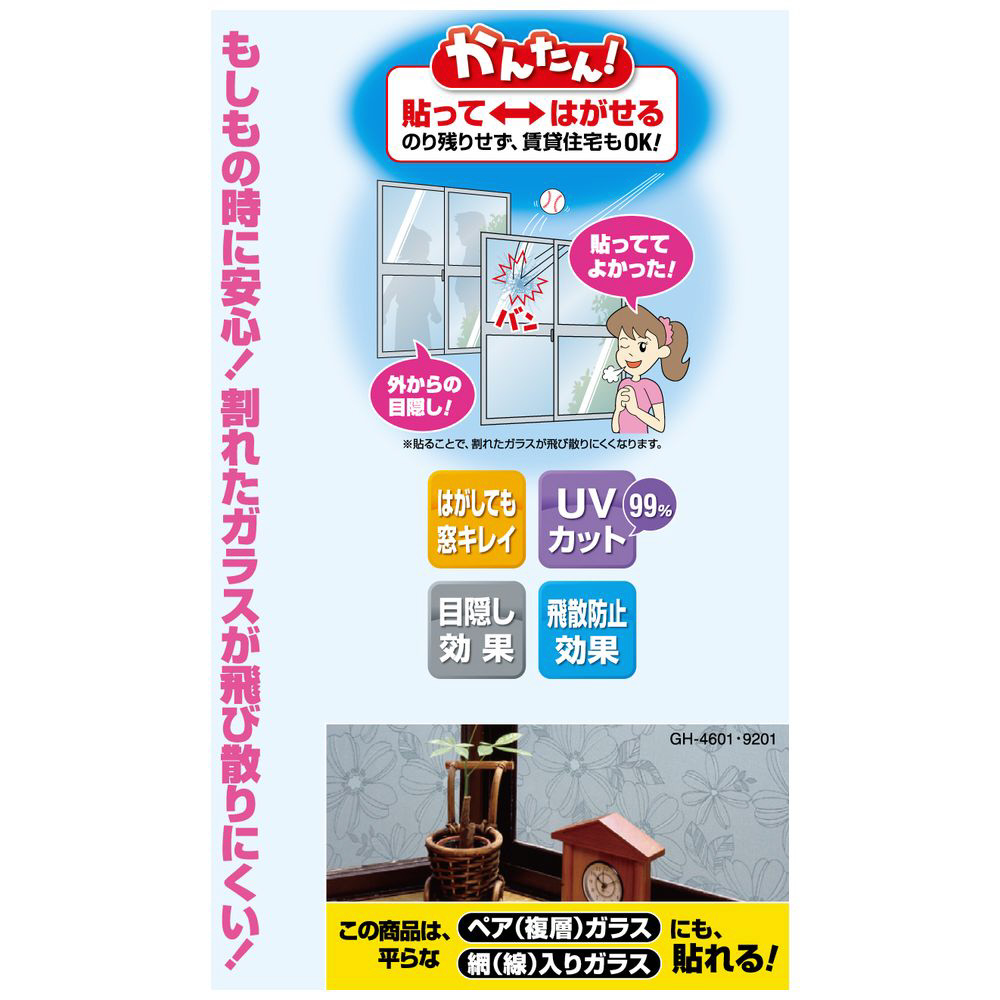 窓 シート 飛散防止 UVカット 46cm丈×90cm巻 複層ガラス・網入りガラス対応 大革命アルファ 飛散防止効果のある窓飾りシート ホワイトフラワー