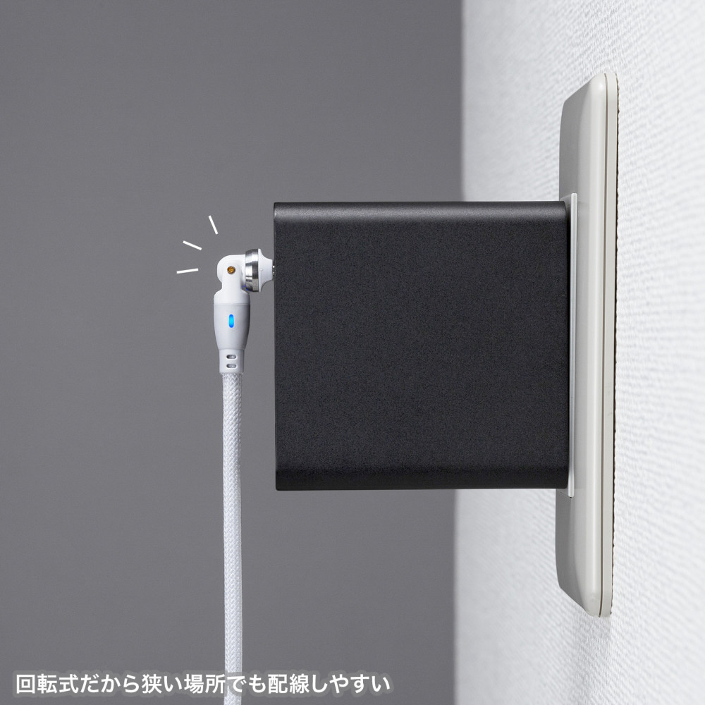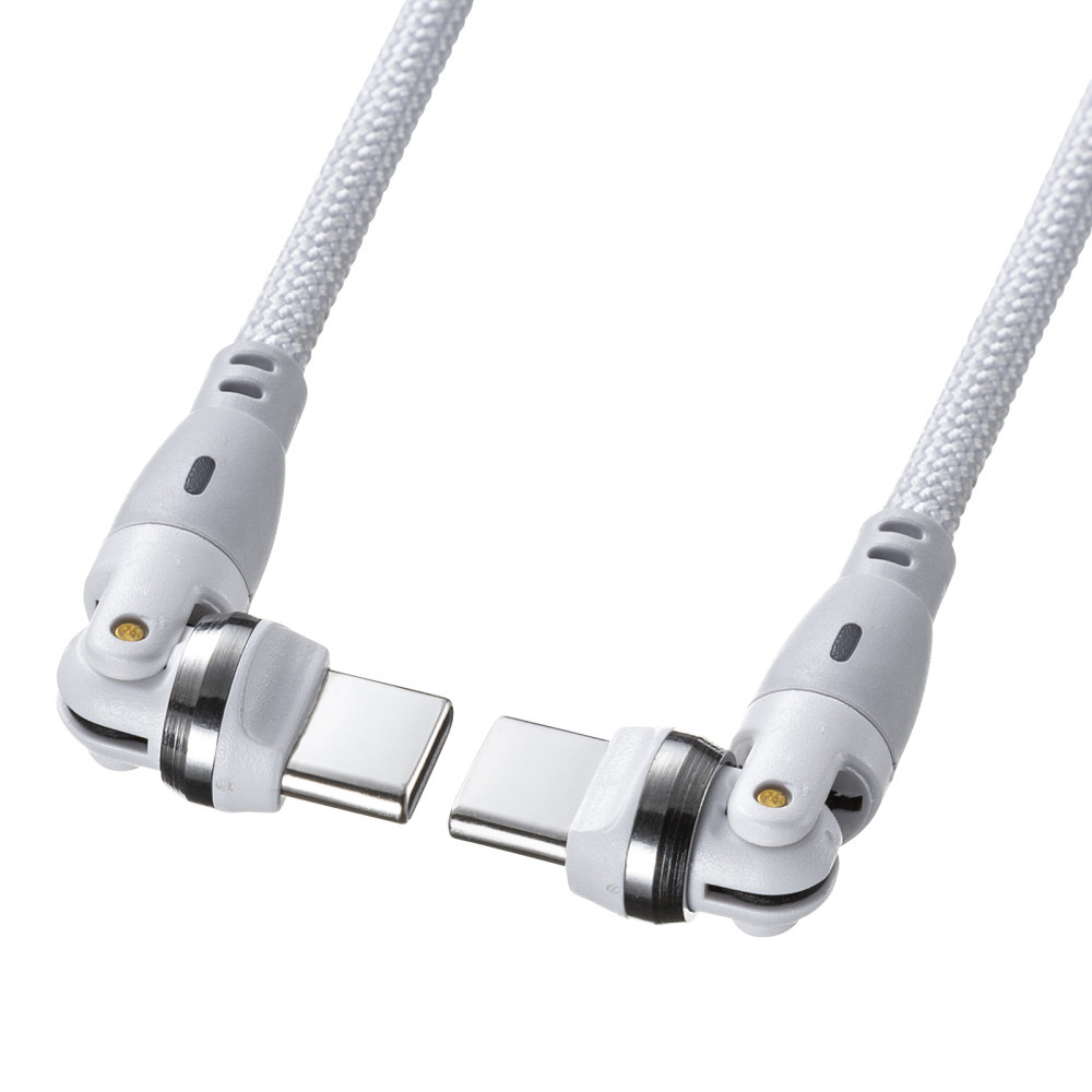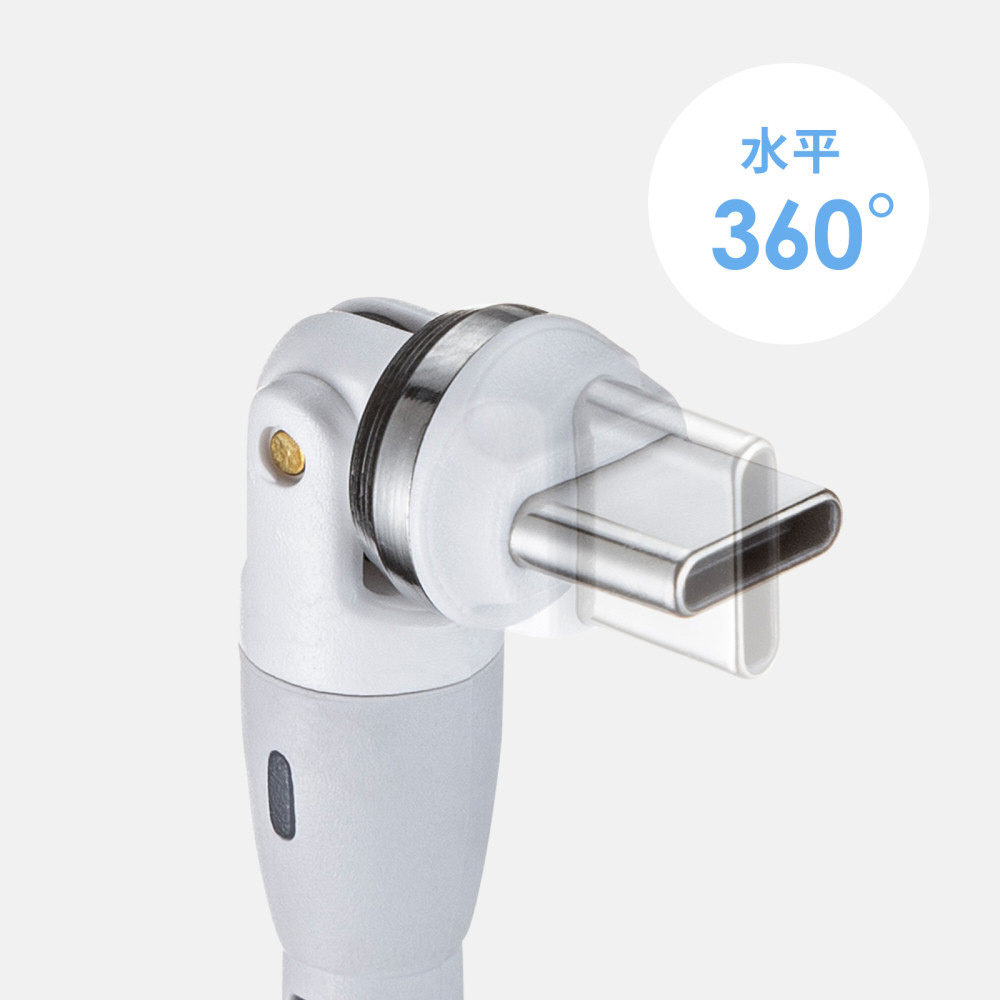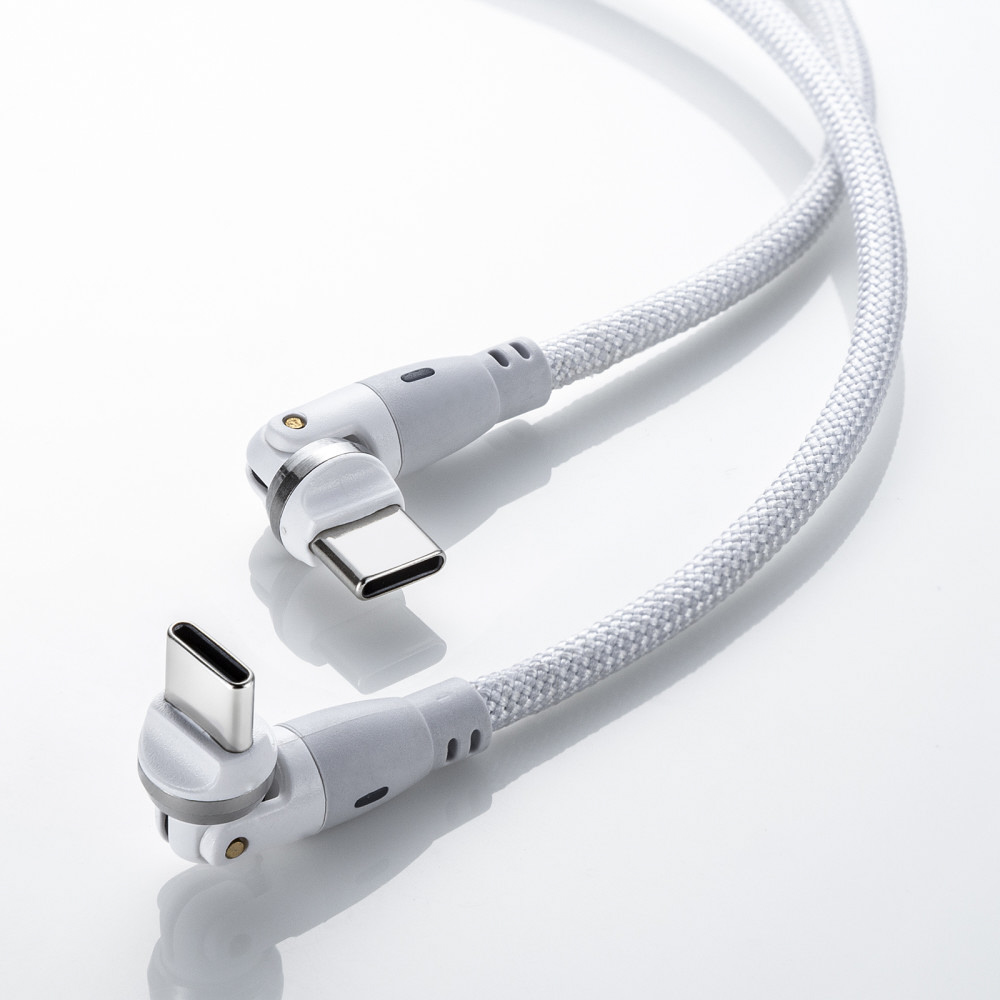 両端のコネクタが540度(左右180度+水平360度)自由自在に回転。操作性と耐久性を大幅に向上させたUSB Type-Cケーブル。PD100W対応。