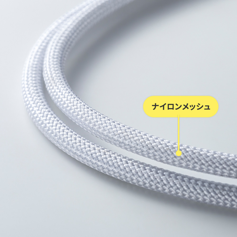 ■ナイロンメッシュケーブルを採用しており、伸縮性や柔軟性が高く、曲げやねじれ、引っ張りにも強いケーブルです。