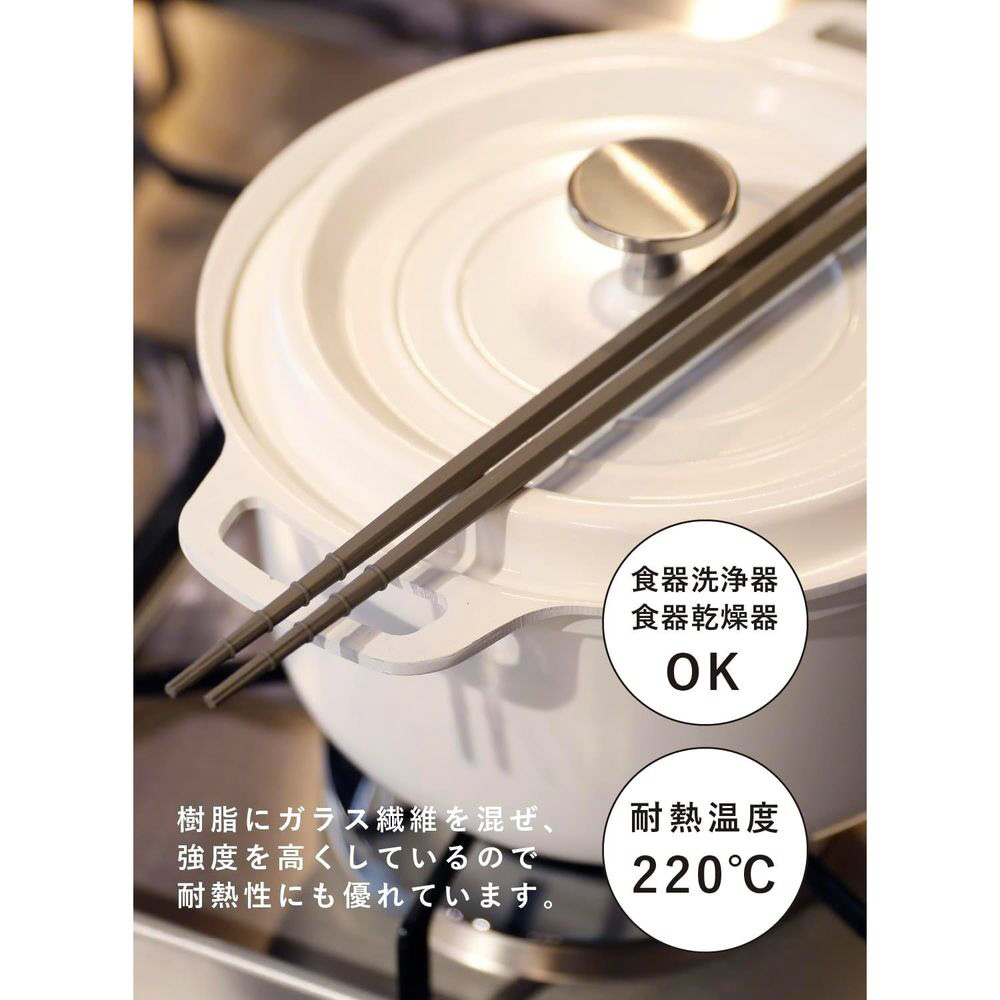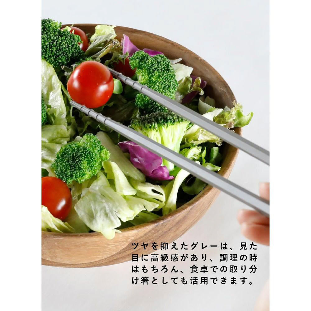 つかみやすい菜箸の抗菌タイプです。十字形状の箸先と凸型すべり止めで食材をしっかり掴めるので、盛り付け・調理・取り箸など、様々なシーンで活躍します。十字形状は一般的な丸い先端のお箸と比べて接地面が多くなるので、滑りにくくしっかり掴むことができます。凸型すべり止めは、食材が詰まりにくくお手入れがしやすくなっています。豆類などの小さな食材もしっかり掴むことができます。樹脂にガラス繊維を混ぜており、強度・耐熱性に優れています。【仕様】耐熱温度:220度●食器洗浄機:使用可●食器乾燥機:使用可●抗菌加工(抗菌性試験 JIS Z 2801)