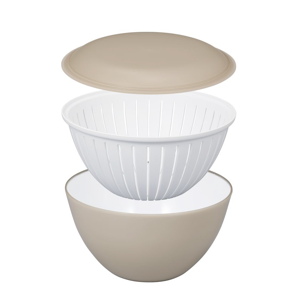 1つで10役をこなす便利なザル・ボウルのセットです。単体や組み合わせて使うことで野菜の水切り、蒸し調理、電子レンジで温める、米研ぎなど、何役もこなせる便利なセットです。ザルとボウルの間に隙間ができる構造なので、野菜の水抜きが行いやすく、余分な水も捨てやすくなっています。全パーツ電子レンジ、食器洗浄機対応で手軽に調理、お手入れができます。熱湯消毒もでき、衛生的にお使いいただけます。【仕様】セット内容:フタ、ザル、ボウル●ボウル容量:1.5L●ボウル直径:20cm●耐熱温度:140度●耐冷温度:−20度●冷凍庫:使用可●電子レンジ:使用可※耐熱温度内でご使用ください。※油脂を含む食材では使用できません。●食器洗浄機:使用可