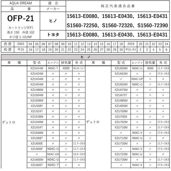 ■適合メーカー:ヒノ、トヨタ