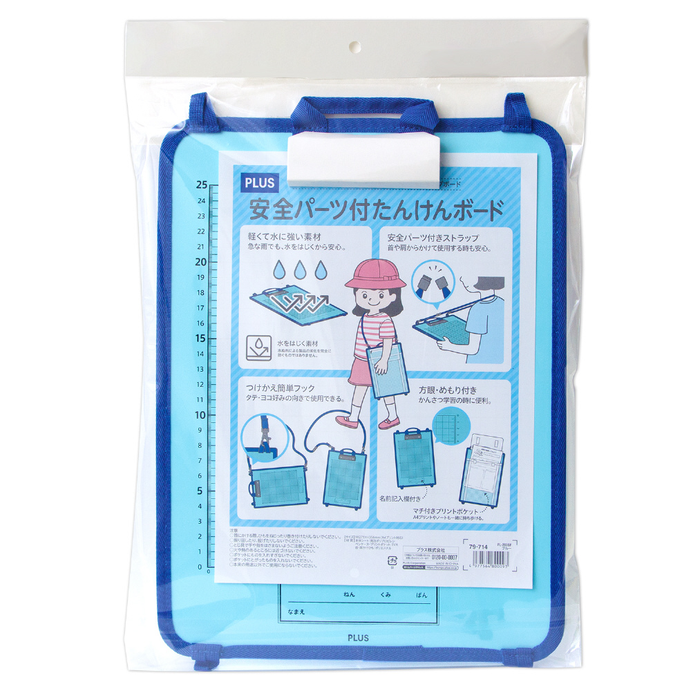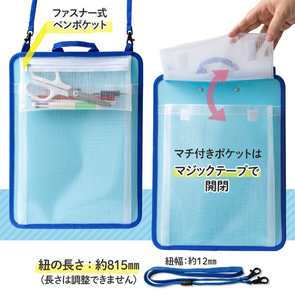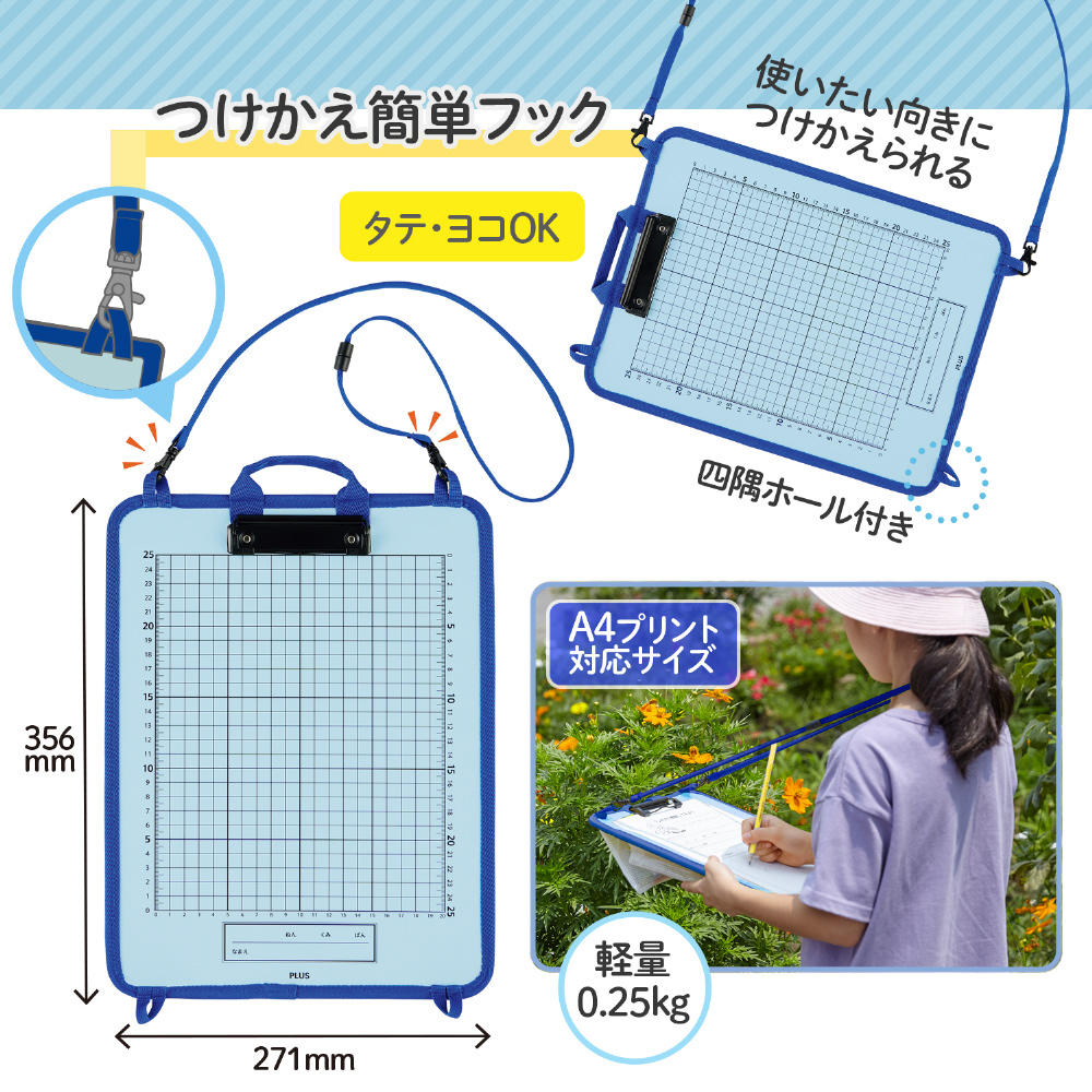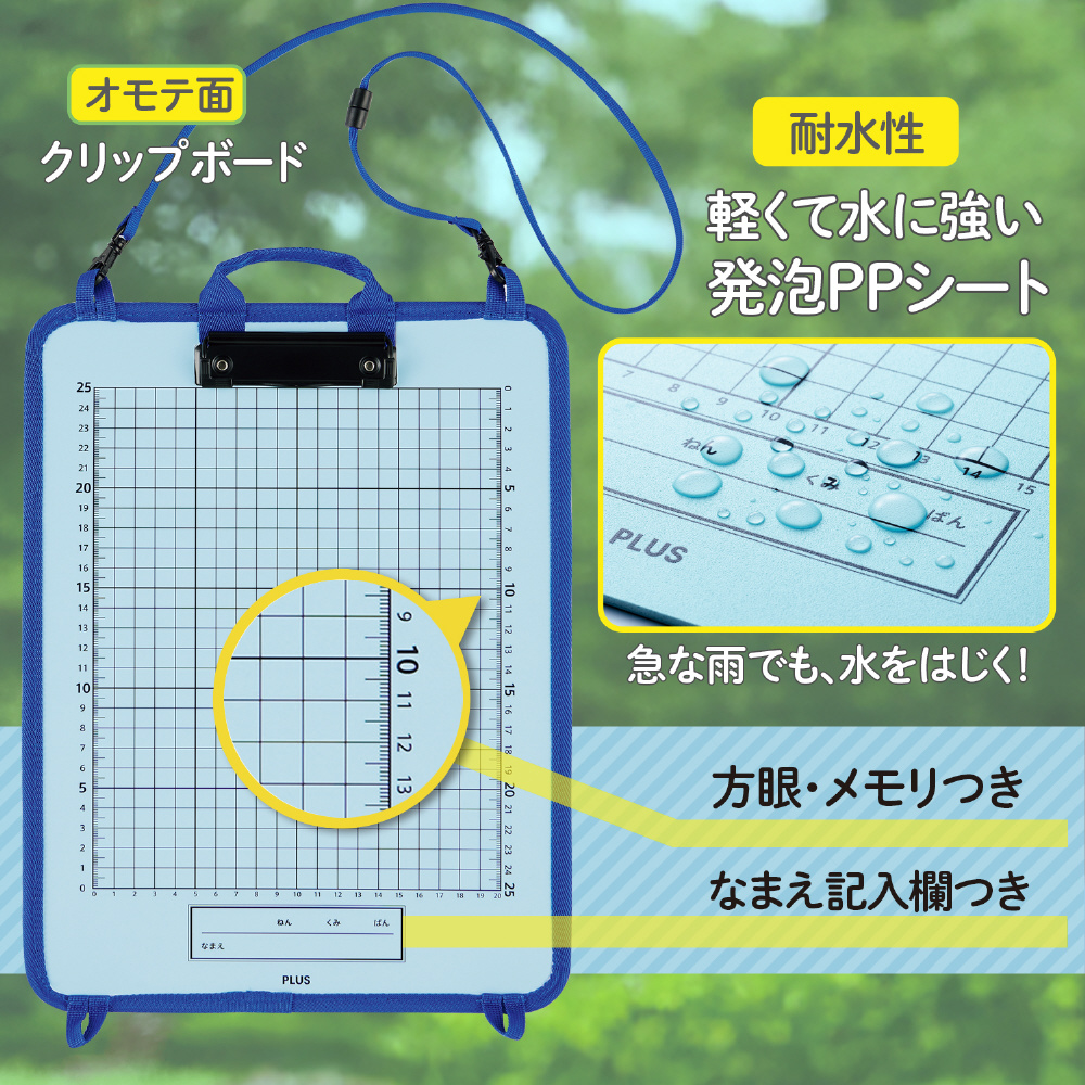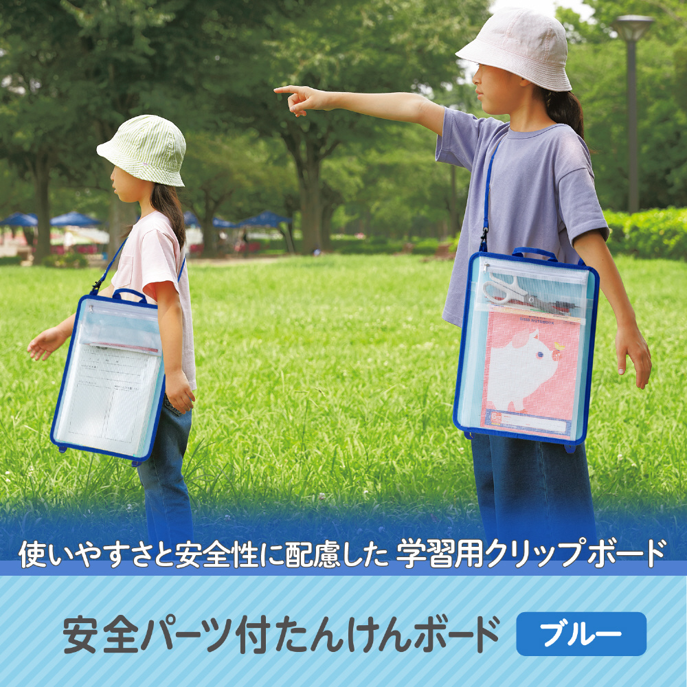 かんさつ学習に役立つクリップボード。PPボード製で軽量で水に強く、安全パーツ付きで安心です。取り出しやすいペンケースとポケット付き。