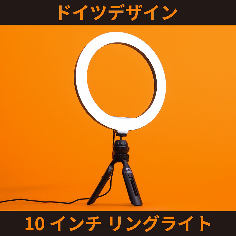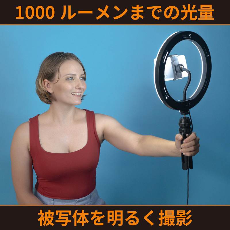 ・10インチ(直径26センチ)のサイズに、120灯のLEDを搭載。明るさ最大1000ルーメンのリングライト。