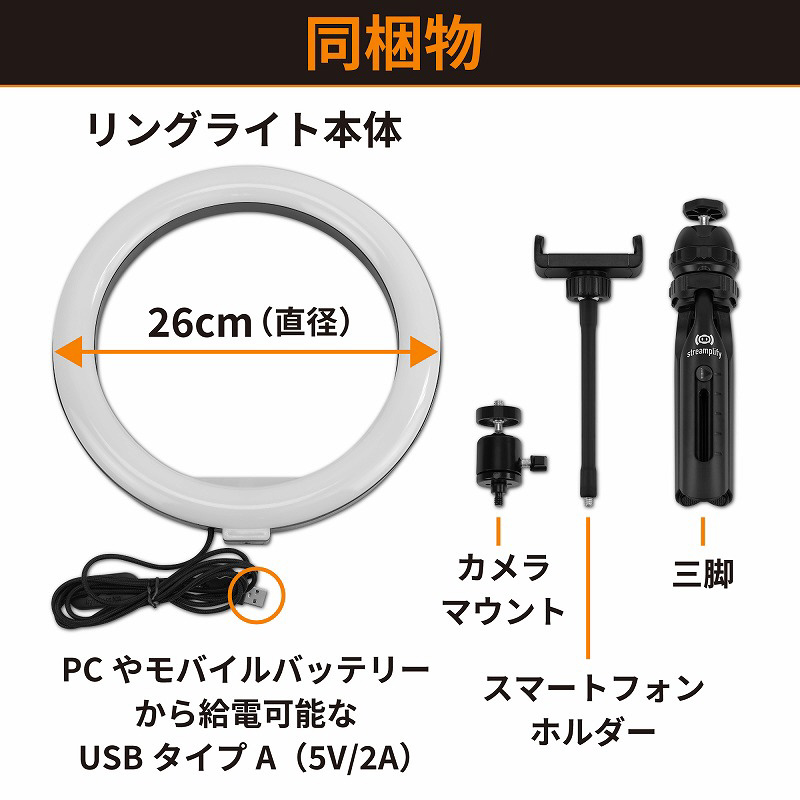 ・付属の三脚やカメラマウント、スマートフォンホルダーと組み合わせることであらゆるスタイルのストリーミングに対応。