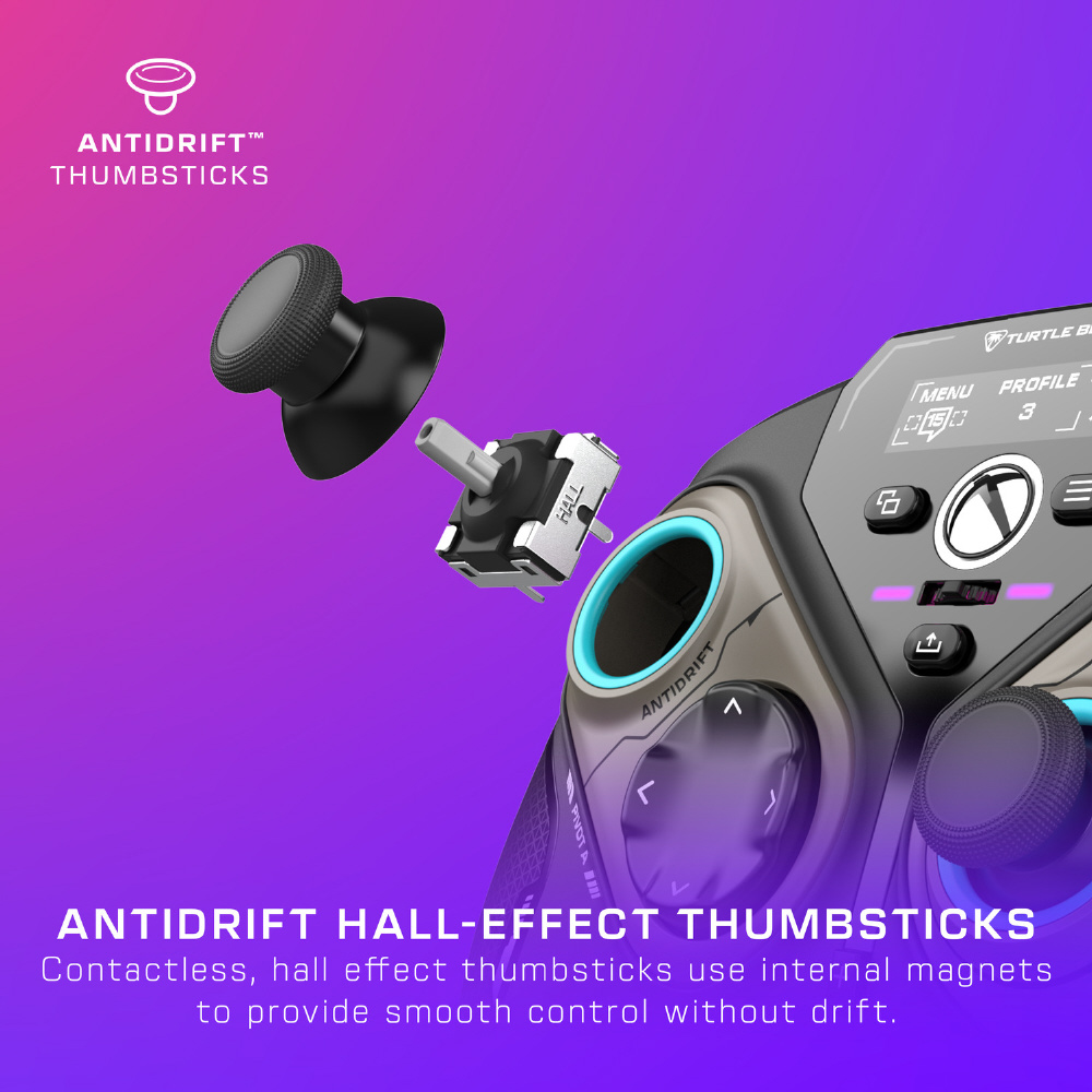 非接触型のホール効果サムスティックは、完全接触型のアナログスタイルのスティックの代わりに磁石を内蔵し、