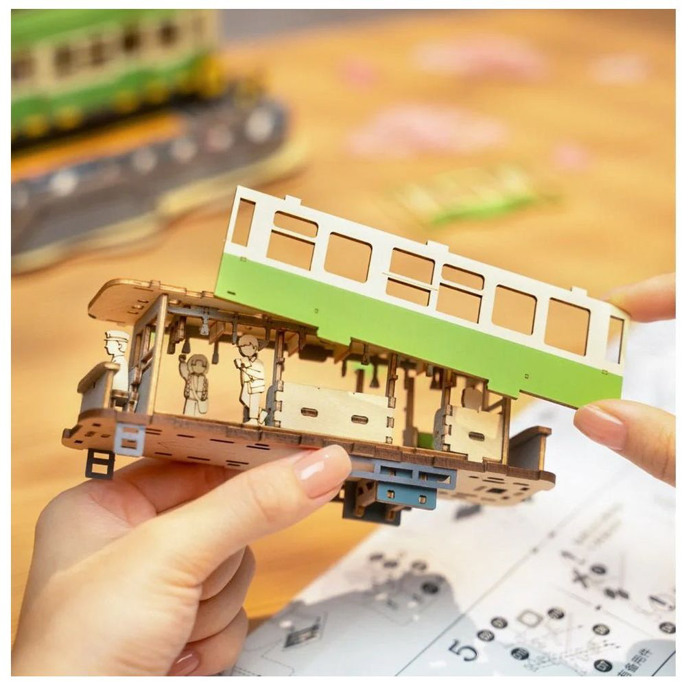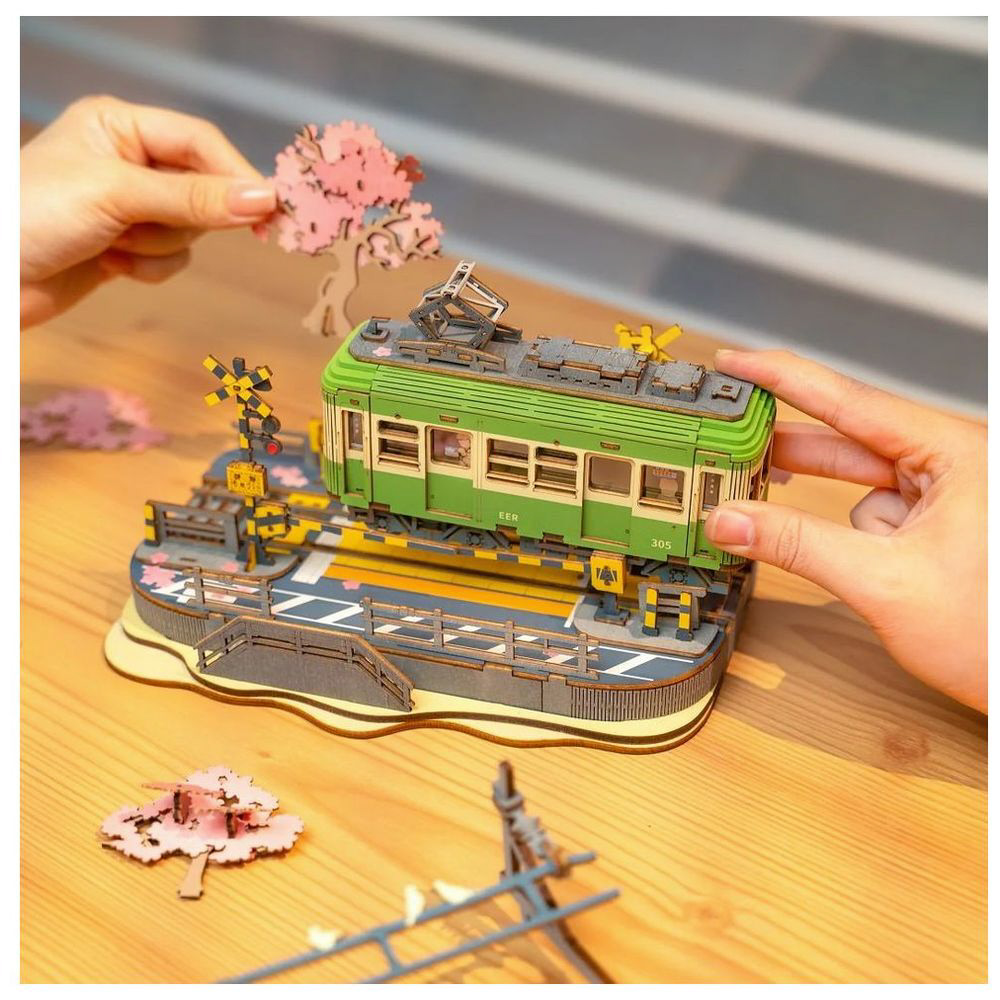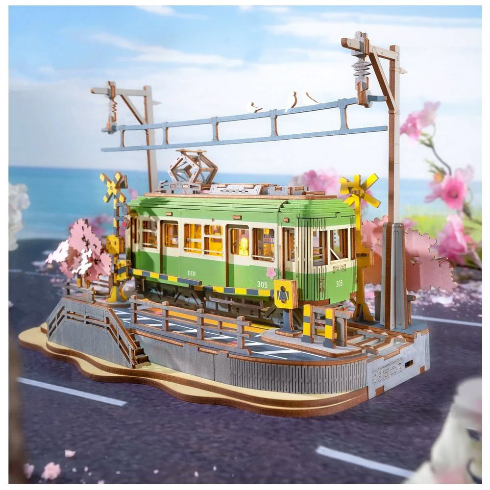 海辺を走る電鉄がモチーフのウッドパズルです。