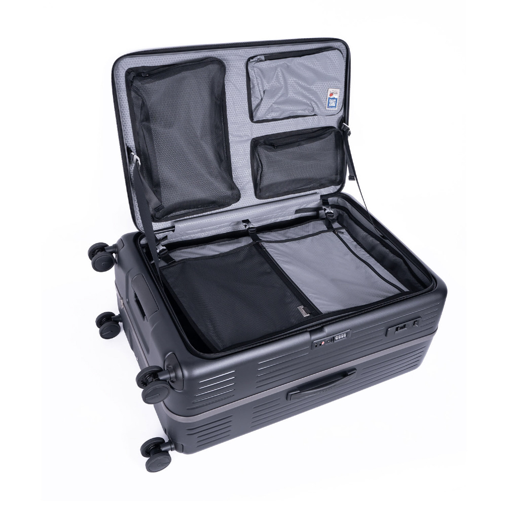 スーツケース ジッパータイプ 宿泊目安: 10日間以上 120L 横開きフロントオープン 前輪ストッパー 内装抗菌・防臭加工 墨色 MX-8011RV-30