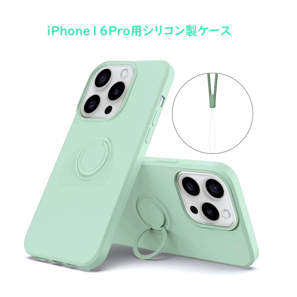 RM iPhone16Pro用シリコンケース(リング付・ミントグリーン)