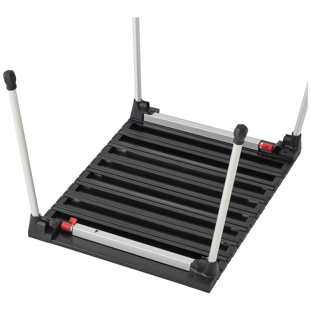 八の字脚フレーム採用により安定感も抜群。ジッパーレスの収納袋が付属し、被せるだけなので素早い収納ができるのもポイント。