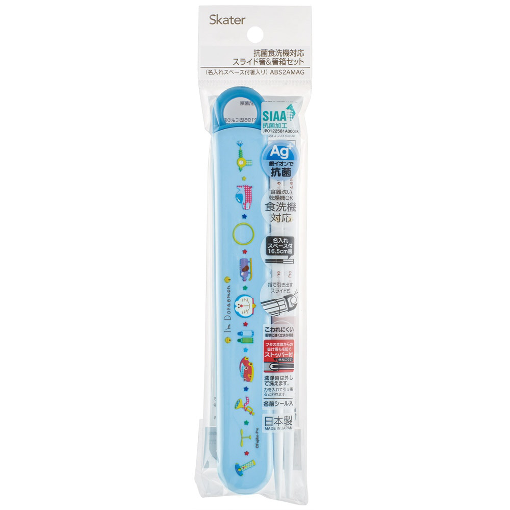 ドラえもん/ギンガム 抗菌スライド式箸・箸箱セット ABS2AMAG