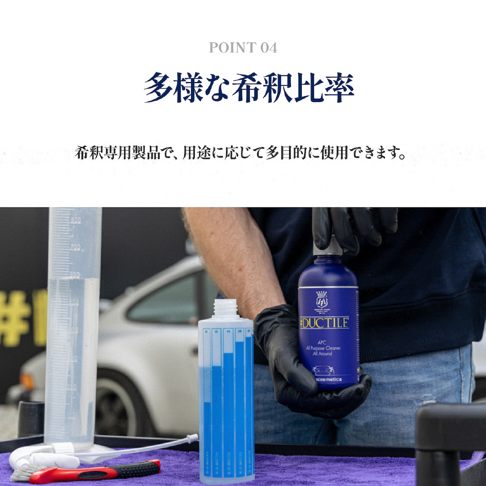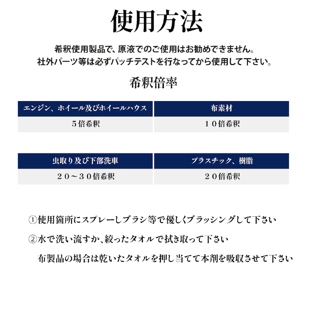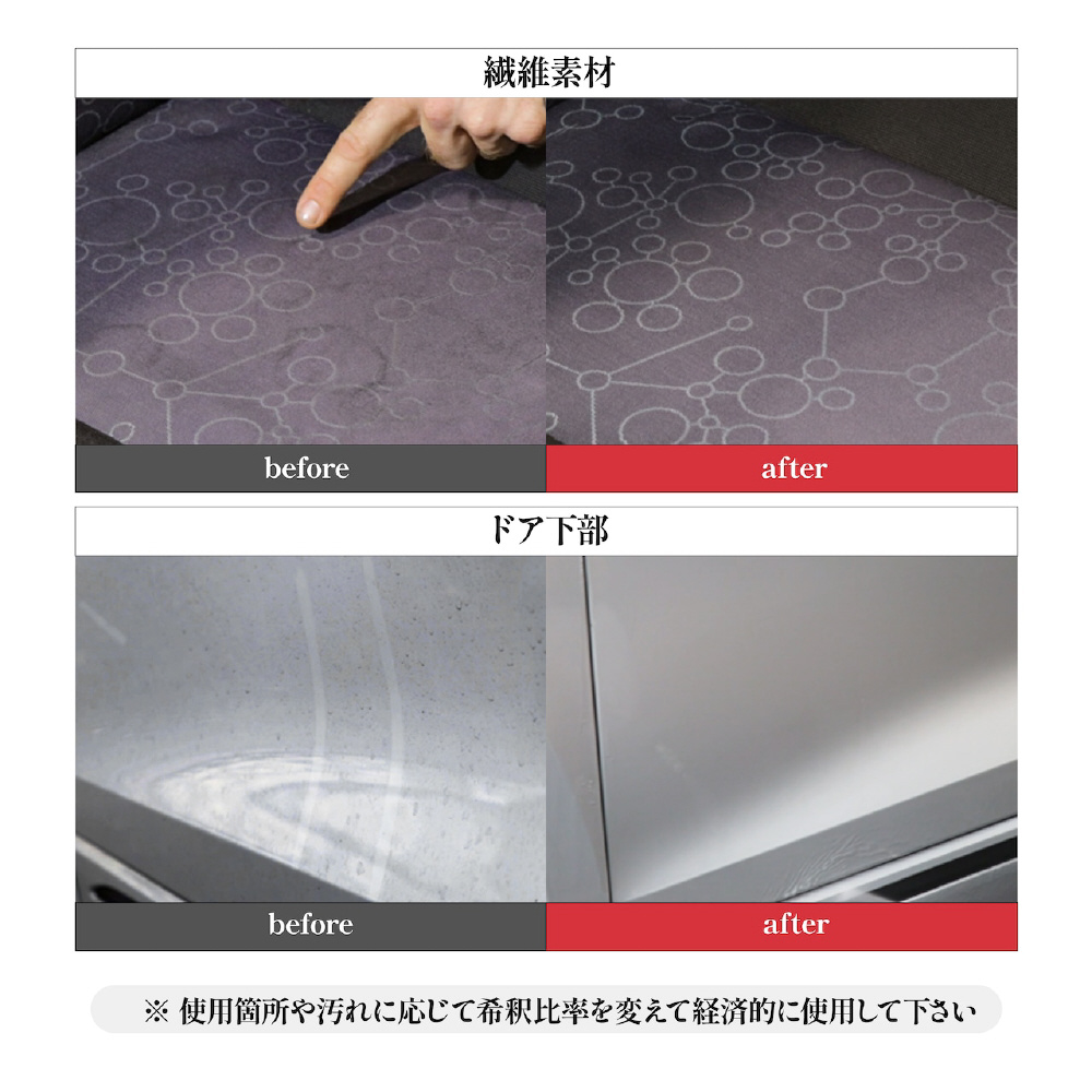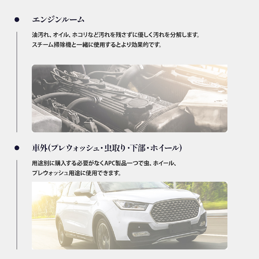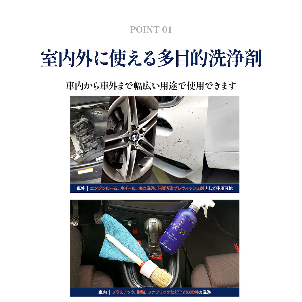 車内外のすべての素材に使用可能なAPC多目的洗浄剤です。