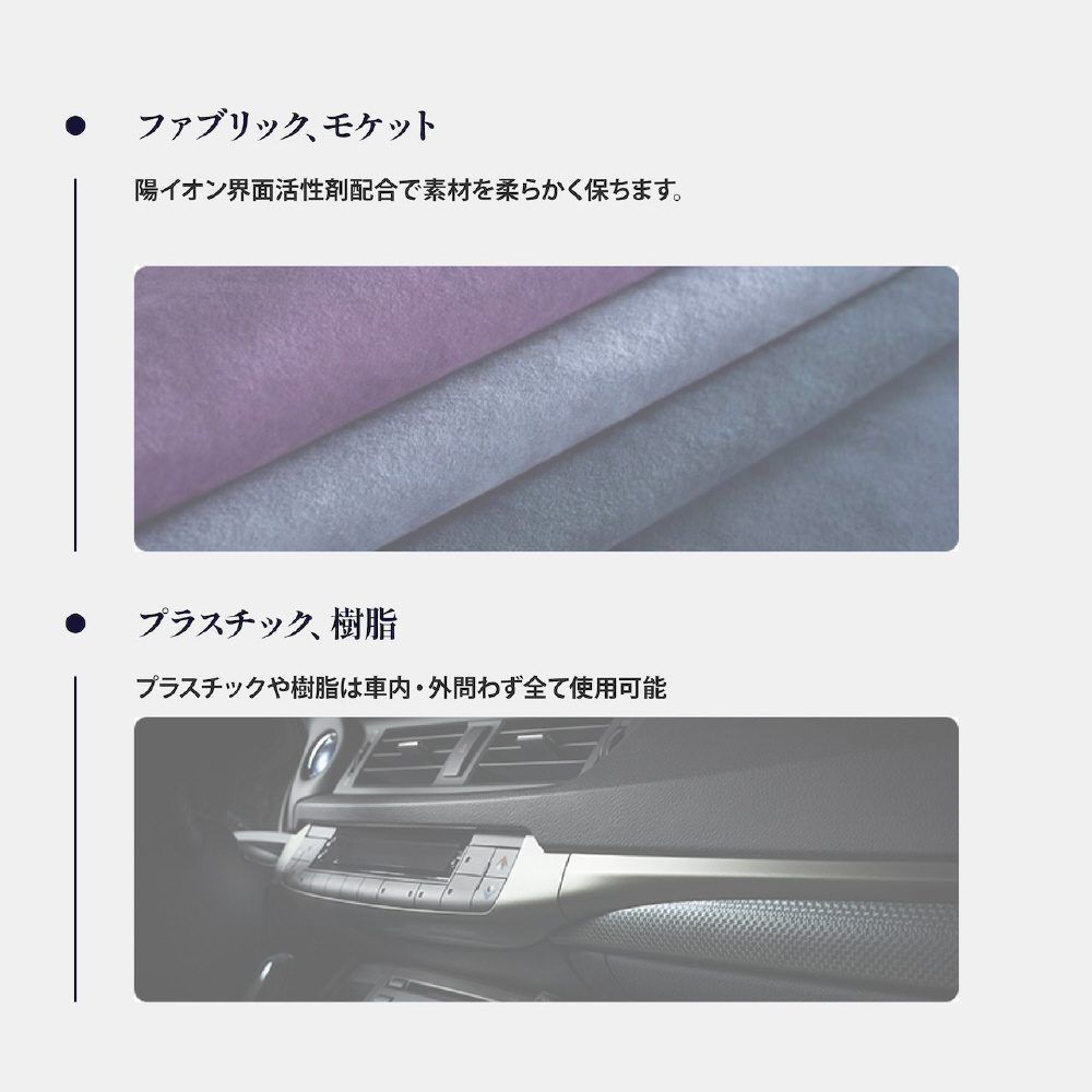 アルカンターラ素材やデリケートな布地を含むすべての種類の布地に使用でき、油やグリースのような頑固な汚れを取り除くことができます。