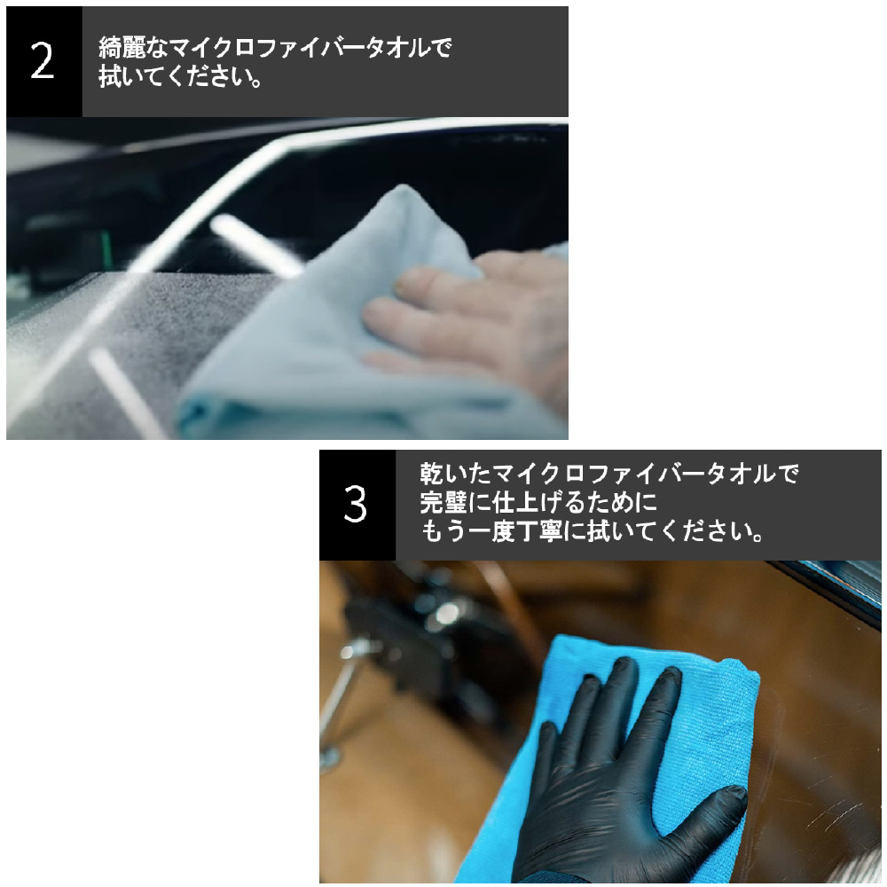 2.きれいなマイクロファイバータオルで拭いてください。