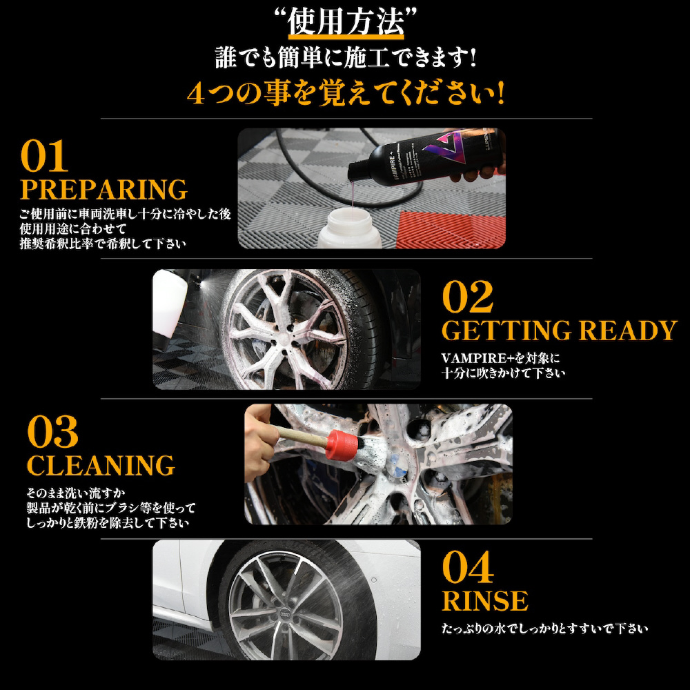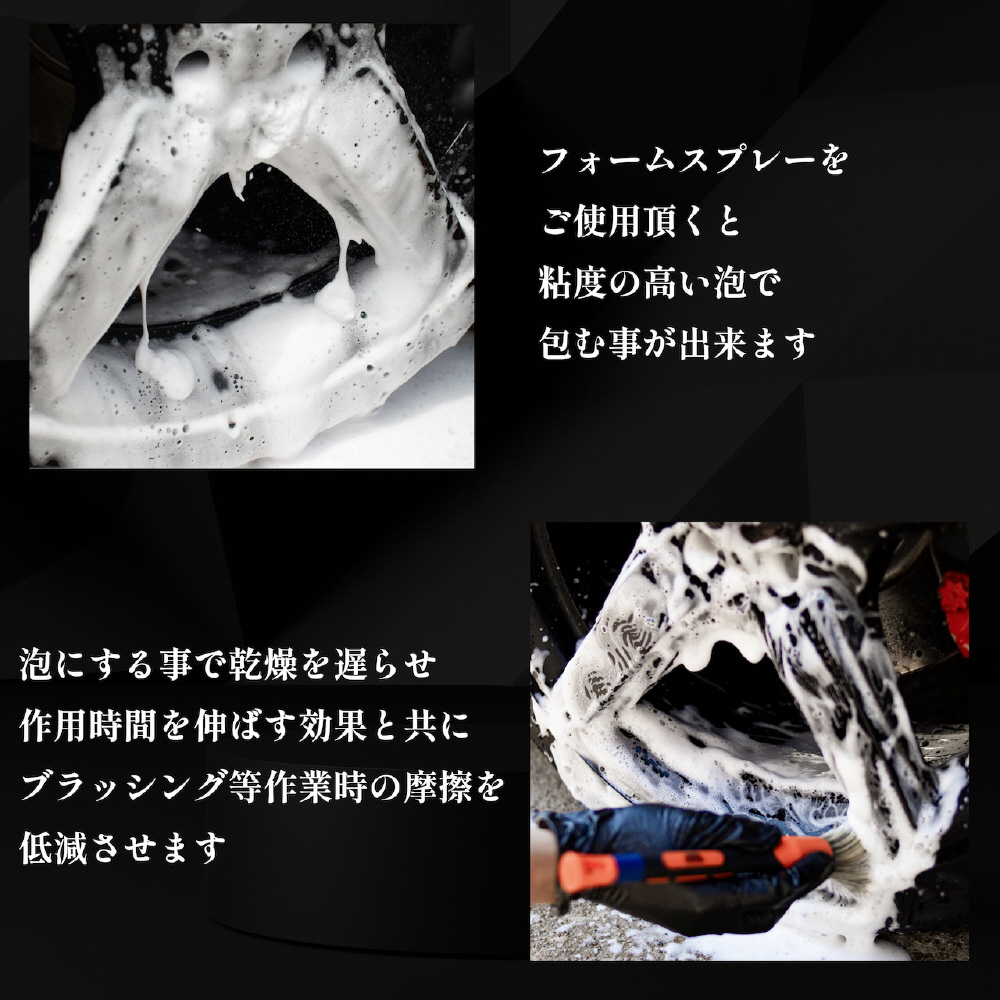 ・優秀なホイール洗浄力:安全な中性製品と同時に優秀なホイール洗浄力を持ち合わせています。