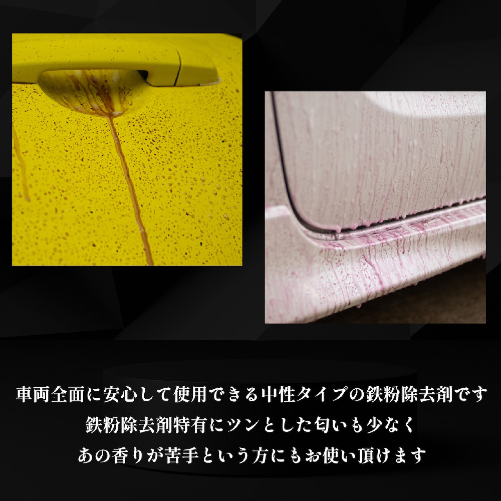 鉄粉を乳化させて除去するタイプで、ボディーに優しく鉄粉除去剤特有の紫の反応も抑えられています。