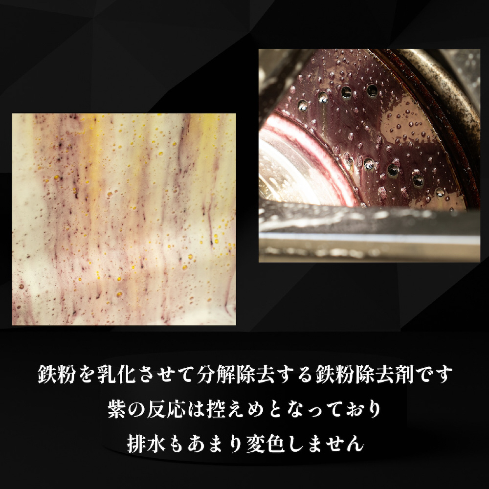 鉄粉を乳化させて除去する中性鉄粉除去剤です。