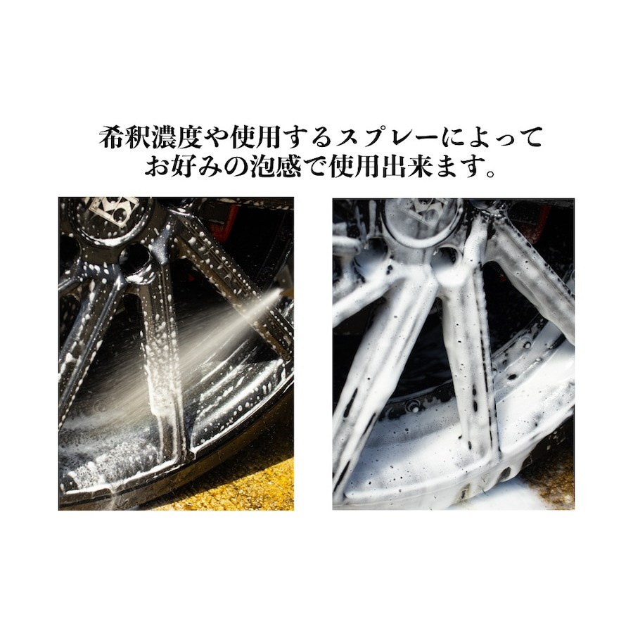 ・優秀な高い希釈比:スノーフォーム1:5、スプレーヤー1:10の優れた希釈比率を持っており、フォームを利用したプレウォッシュと鉄粉除去効果を同時に得ることができます。