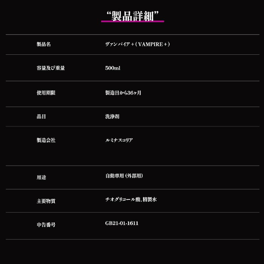 VAMPIRE+ ヴァンパイアプラス500ml 鉄粉除去剤 LUMINUS