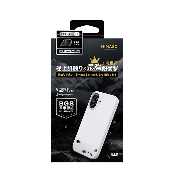 iPhone 16 Plus Magsafe対応 3層構造耐衝撃ケース ホワイト NI-D1-16BS0606