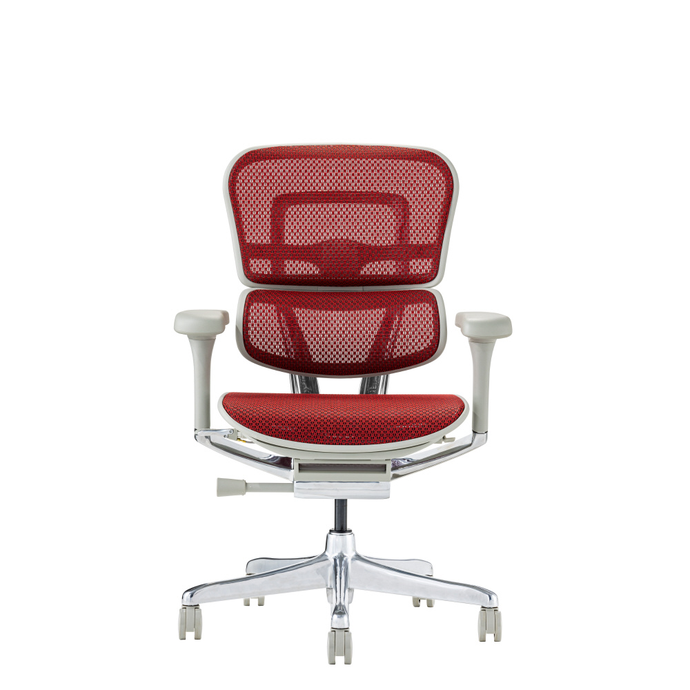 デスクワーク時に負担のかかりやすい腰へのサポートに重点を置き、人間工学を基にして開発・設計された多機能チェア「エルゴヒューマン」。そのシリーズのスタンダードモデル。独立したランバーサポートを装備。ヘッドレスト無し。新機能「メモリーロッキング」を搭載。