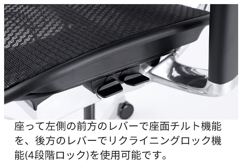リクライニング時の最大傾斜角度を無段階で調整ができるようになりました。リクライニング時の角度の上限を設定することで、頻繁に体勢を変えて作業される方にオススメな機能です。
