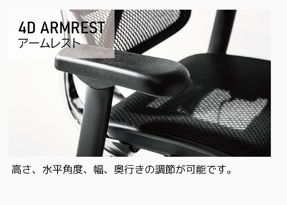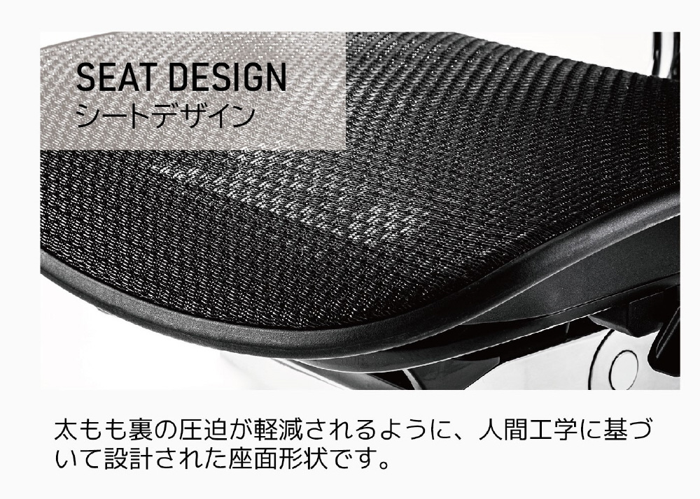 弾力性に優れたメッシュを採用。多様な座り方に対応し、長時間のデスクワークをサポート。高級感と耐久性のあるアルミポリッシュフレームを標準採用。60mmサイズの双輪PUキャスターを標準搭載。