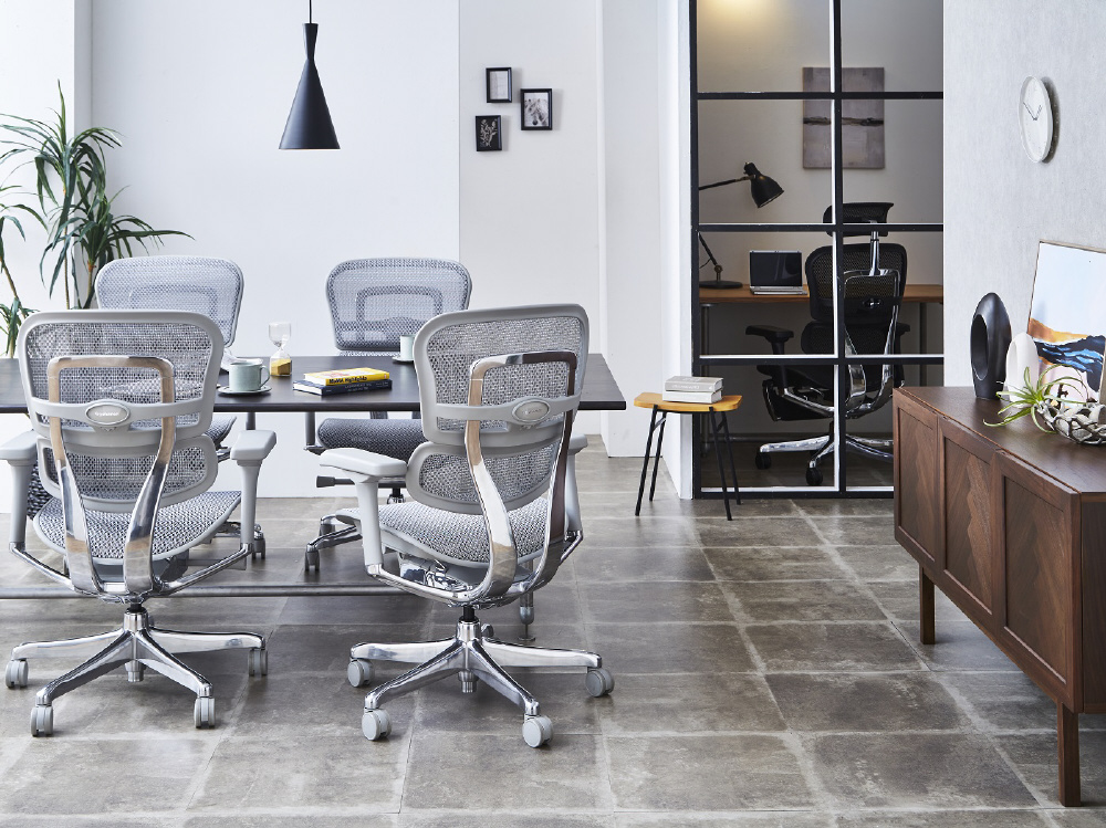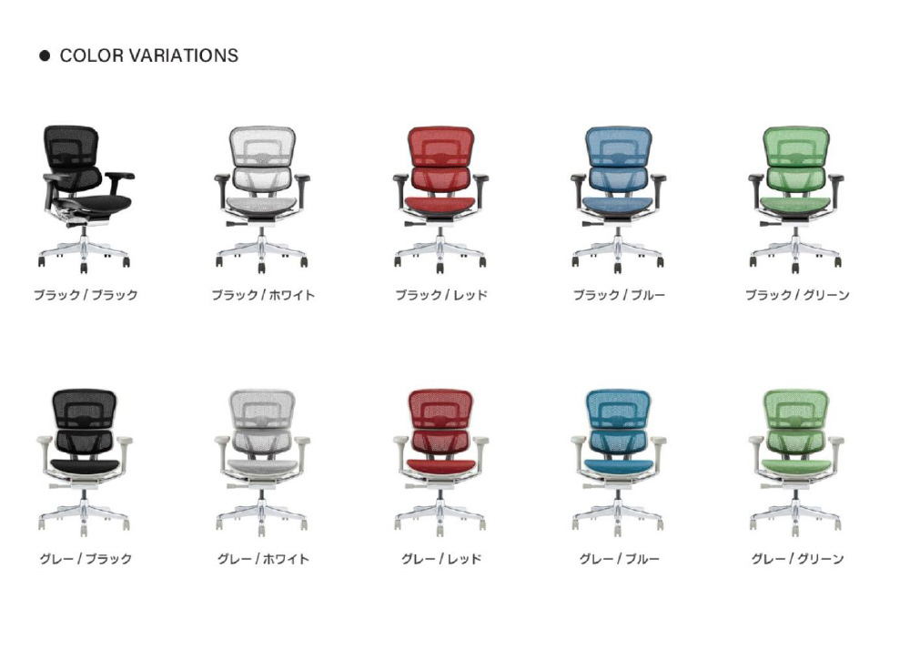 デスクワーク時に負担のかかりやすい腰へのサポートに重点を置き、人間工学を基にして開発・設計された多機能チェア「エルゴヒューマン」。そのシリーズのスタンダードモデル。独立したランバーサポートを装備。ヘッドレスト無し。新機能「メモリーロッキング」を搭載。