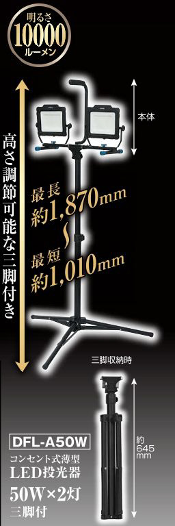 DAISHIN コンセント式薄型LED投光器50W×2灯三脚式 DFL-A50W