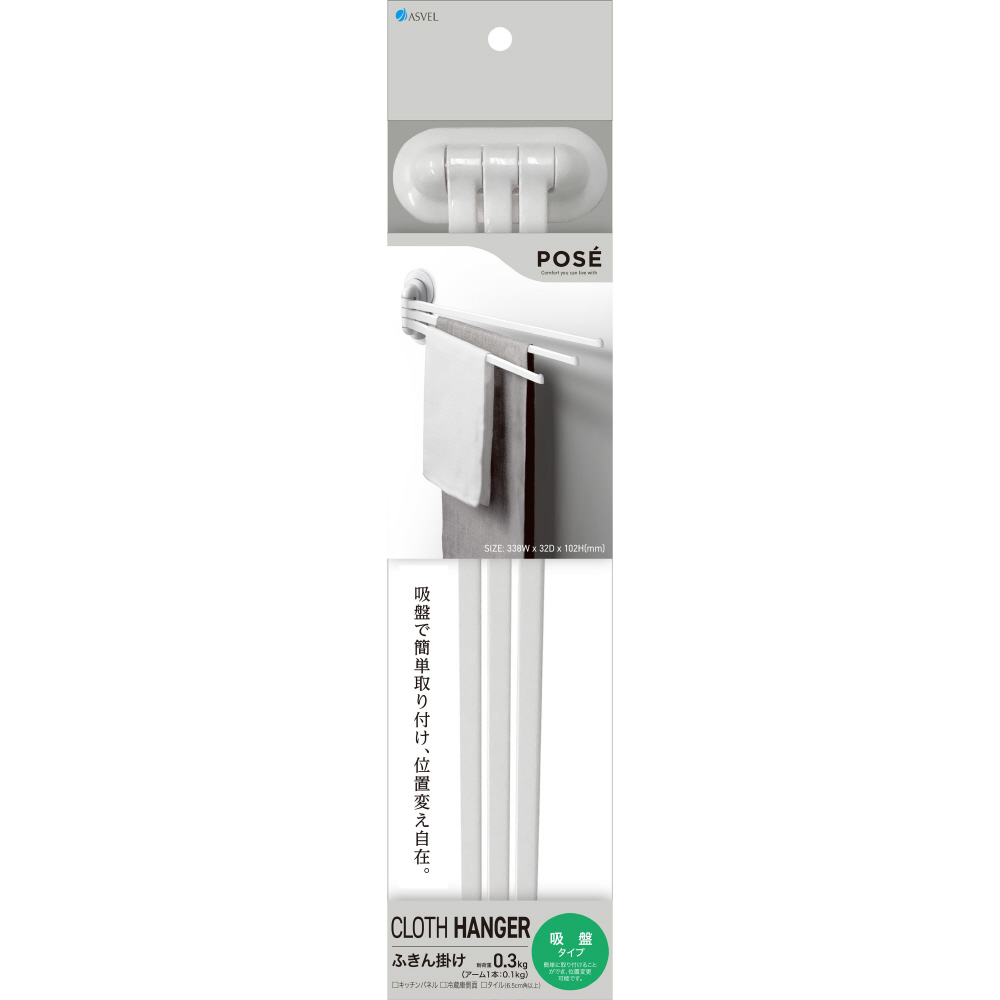 ポゼ ふきん掛け3本(吸盤) ホワイト A4114