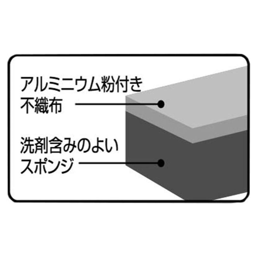 アルミ粒子入り不織布と洗剤含みの良いスポンジの2層構造で、しっかり汚れを落とします。