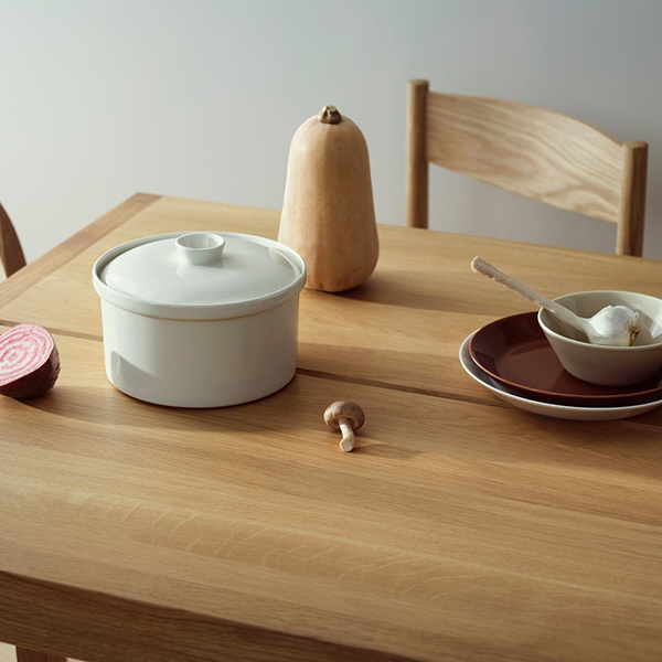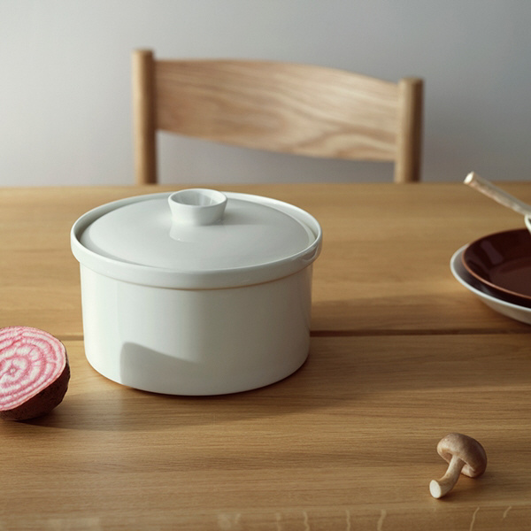ティーマのサービングアイテム、2.3Lの容量の蓋付きポットは、オーブンでのお菓子作りや煮込み料理におすすめのサイズ。シチューやカレーの盛り付けにも最適。テーブルウェアのアクセントとして単品でもお使いいただけるアイテムです。※直火使用不可。