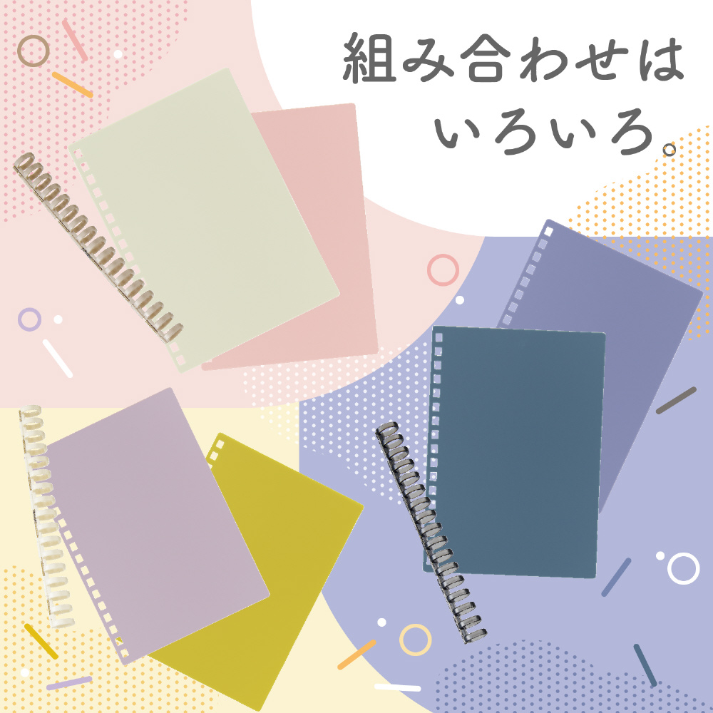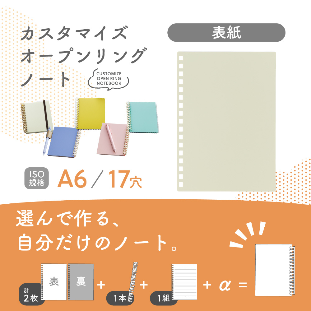 カスタマイズオープンリングノートはパーツを組み合わせて1冊のノートになります。本商品の「表紙」の他に「リング」、「リーフ」、「アクセサリー」を合わせてお買い求めください。本商品は「表紙」が1枚のみの販売となります。ノート作成には2枚必要となります。