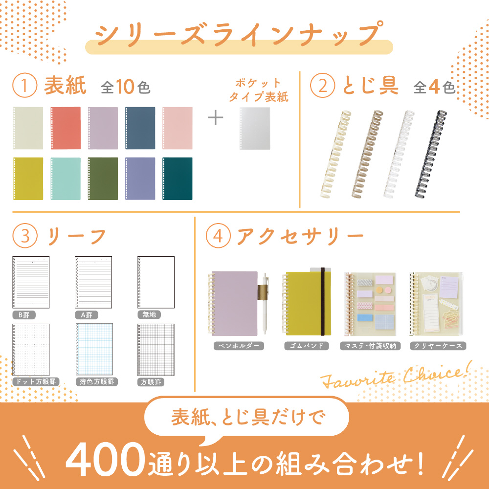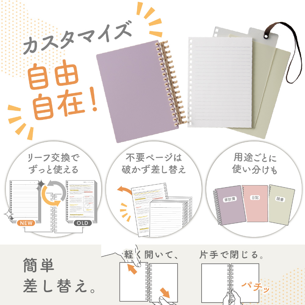 お好きなアイテムを選んでオリジナルノートが作れる、カスタマイズオープンリングノートです。