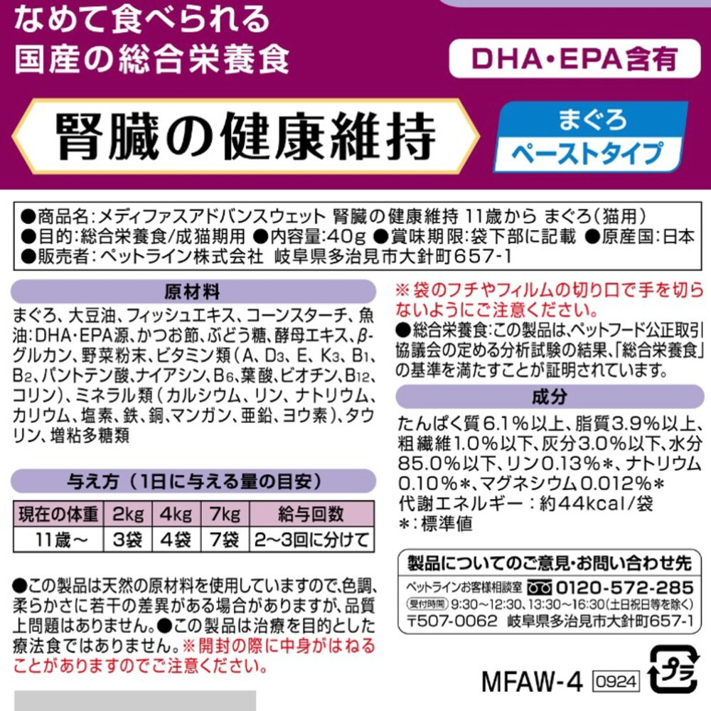 メディファスアドバンスウェット 腎臓の健康維持 11歳から まぐろ 40g