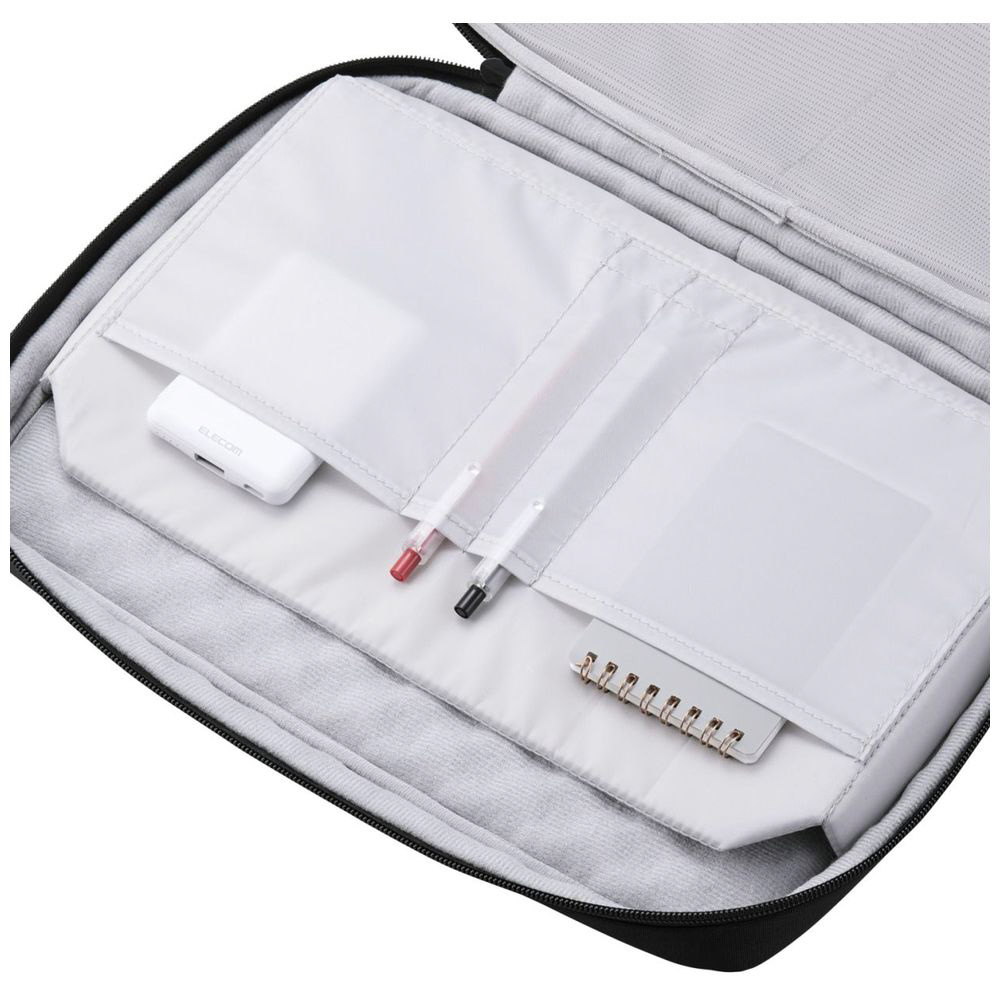本体内装には、マウスやケーブルなどの周辺機器を整理して収納できるストレッチメッシュ素材のオープンポケットを2つ備えています。