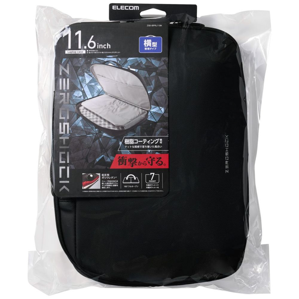 ノートパソコン対応 [〜11.6インチ] インナーバッグ 整理タイプ/横型/樹脂コート ZEROSHOCK ブラック ZSB-IBPRL11BK