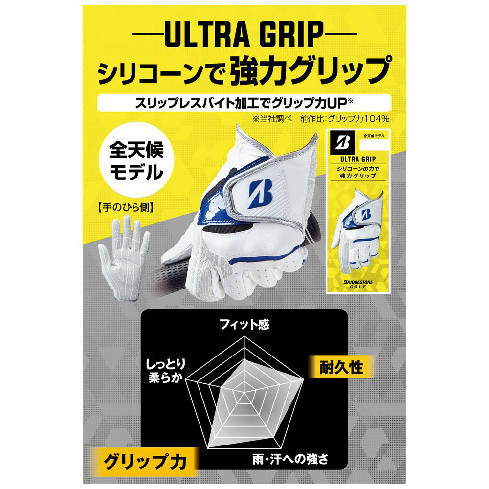 手のひら側のシリコーンプリント面積を前作(GLG25)から拡大(※1)することで、グリップ力が向上(※2)しています。