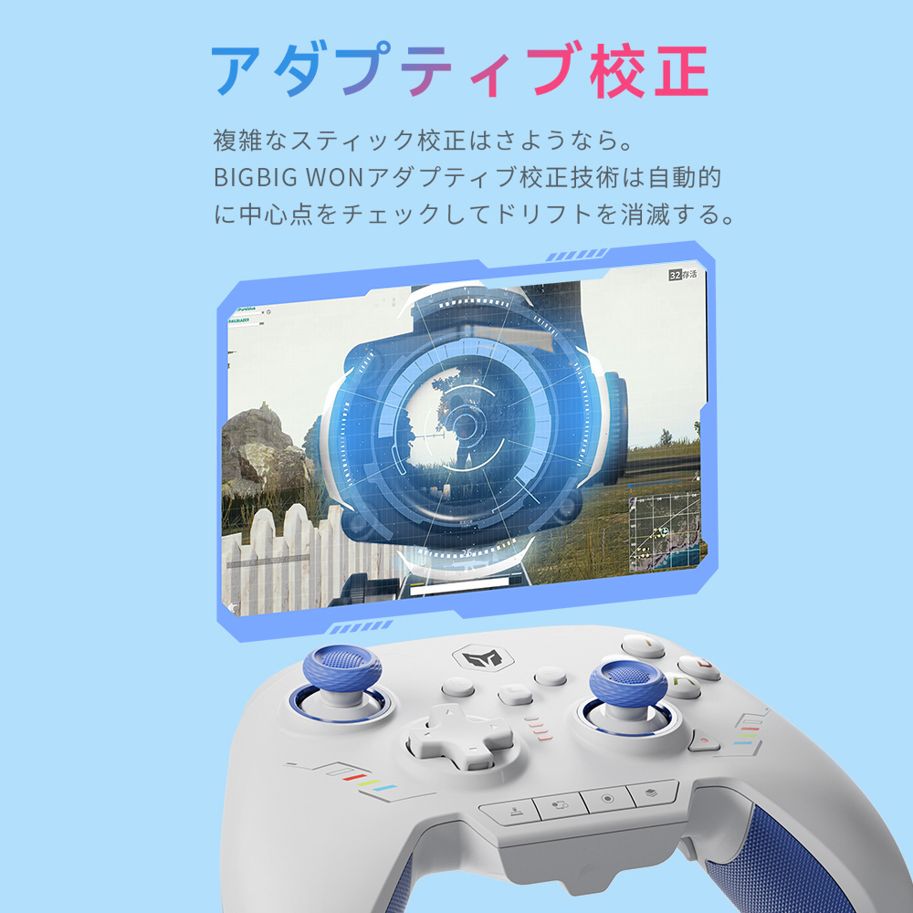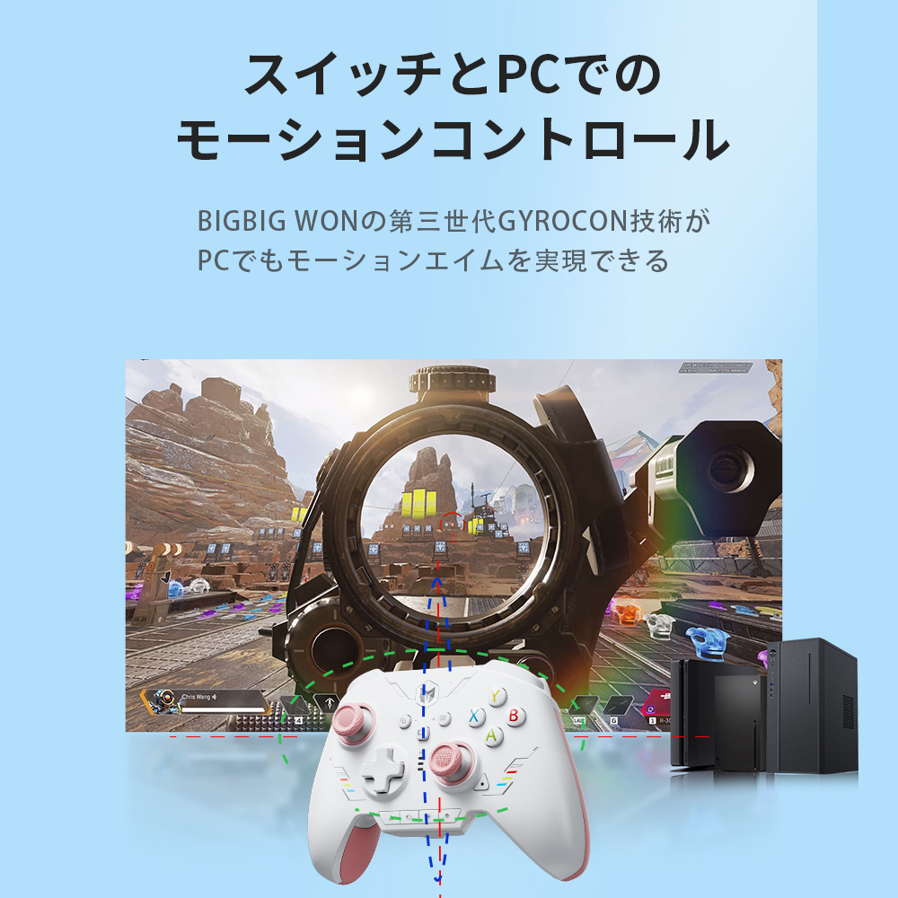 BIGBIG WONの第三世代GYROCON技術により、任天堂スイッチだけでなくWindows PCにもジャイロ機能対応です。