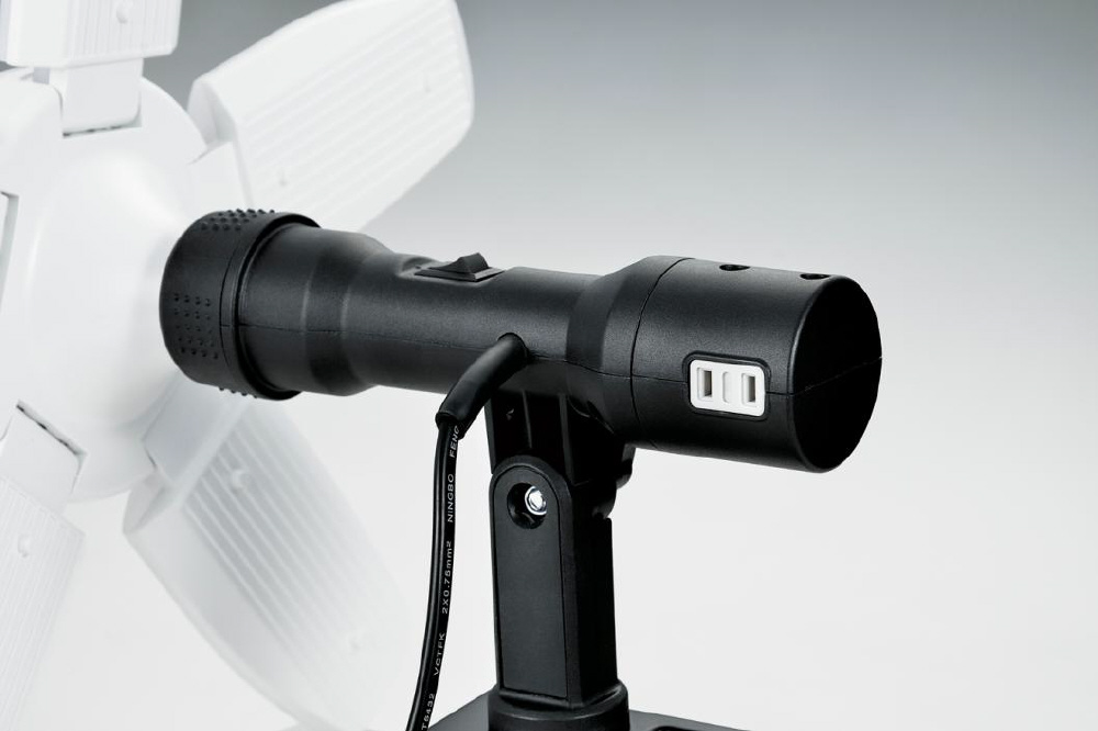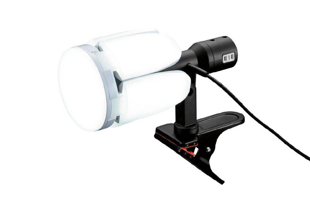 光革命!開閉で照射範囲が変わる 閉じて広範囲照射(最大約300°)開いて前面照射。夜間・暗い場所での作業に。
