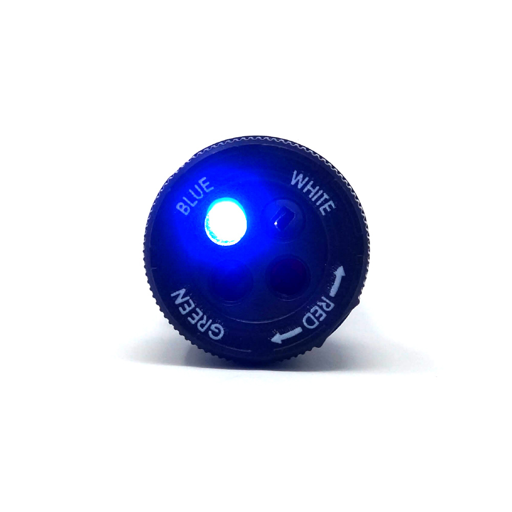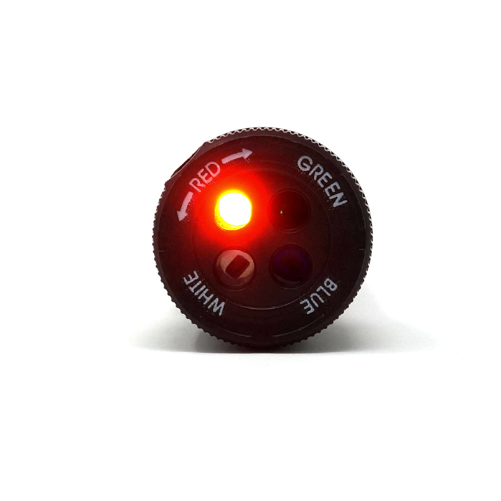 ヘッドを回して色が変わるLEDライト。赤・青・緑・白の4色切り替えが可能です。