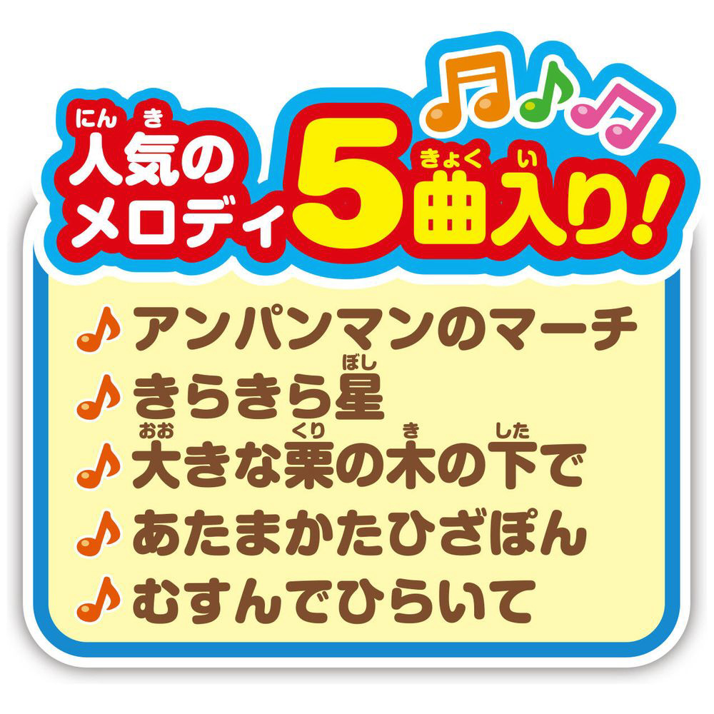 ■「アンパンマンのマーチ」など人気のメロディやなかまたちのおしゃべり、効果音が楽しめます。