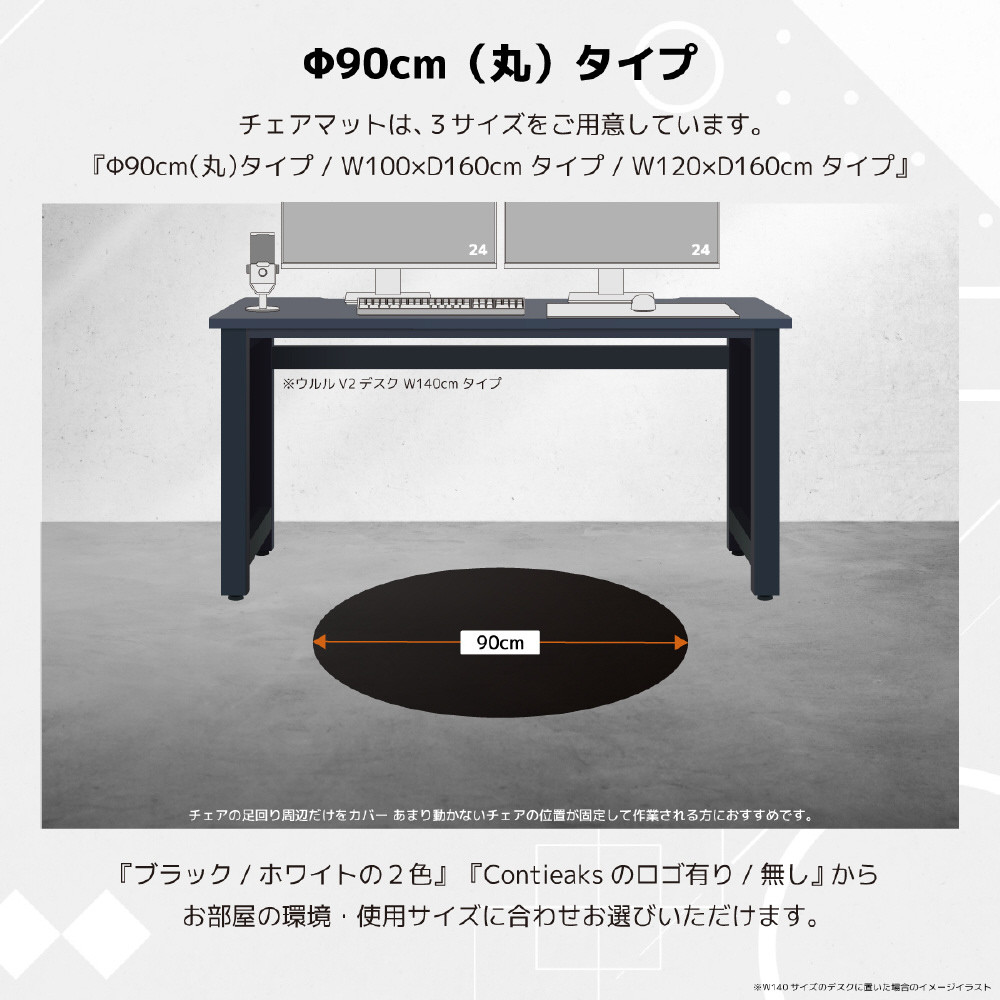 ゲーミングチェアマット [丸型 φ900x2mm] ロゴ入り ホワイト 427194